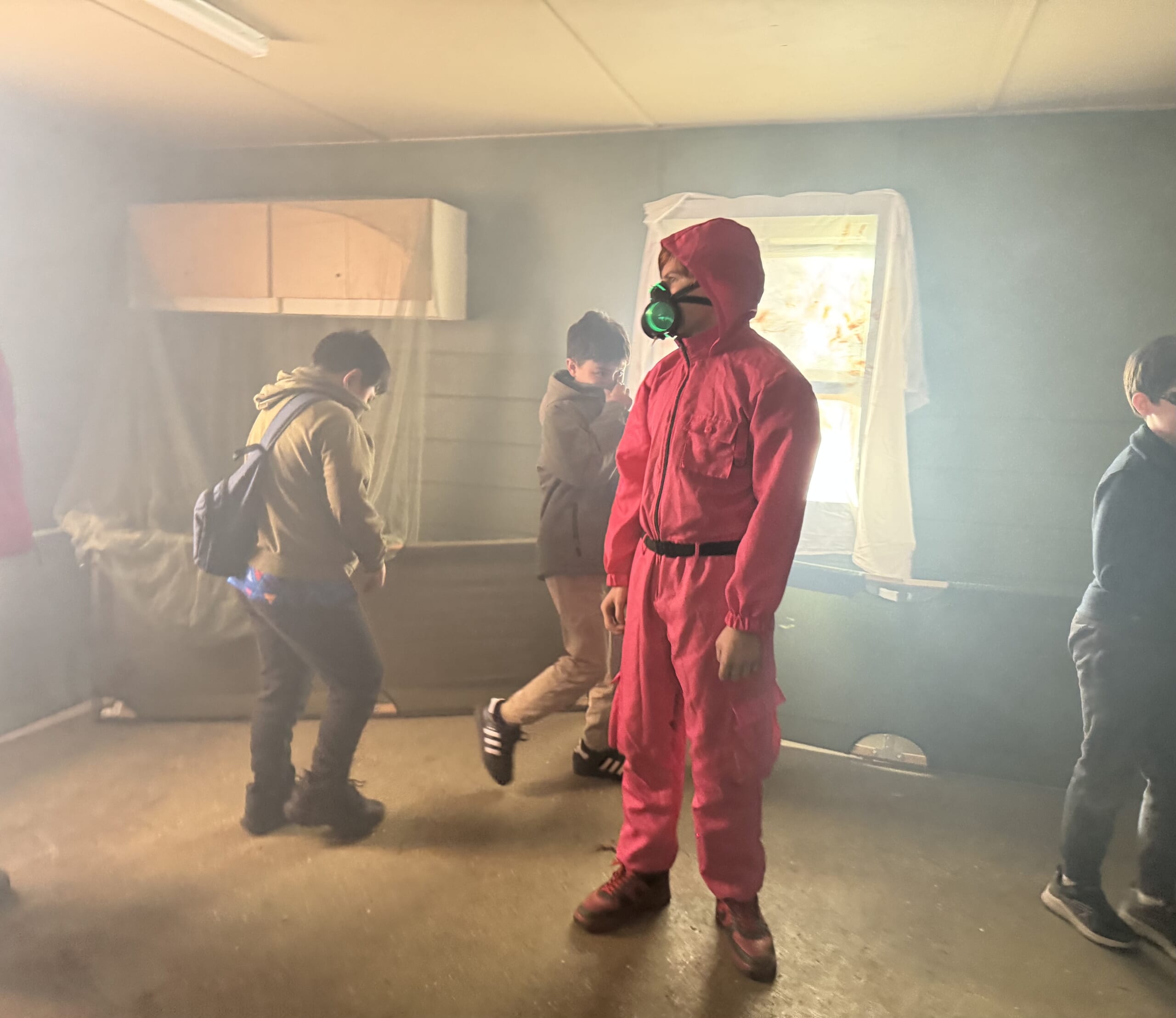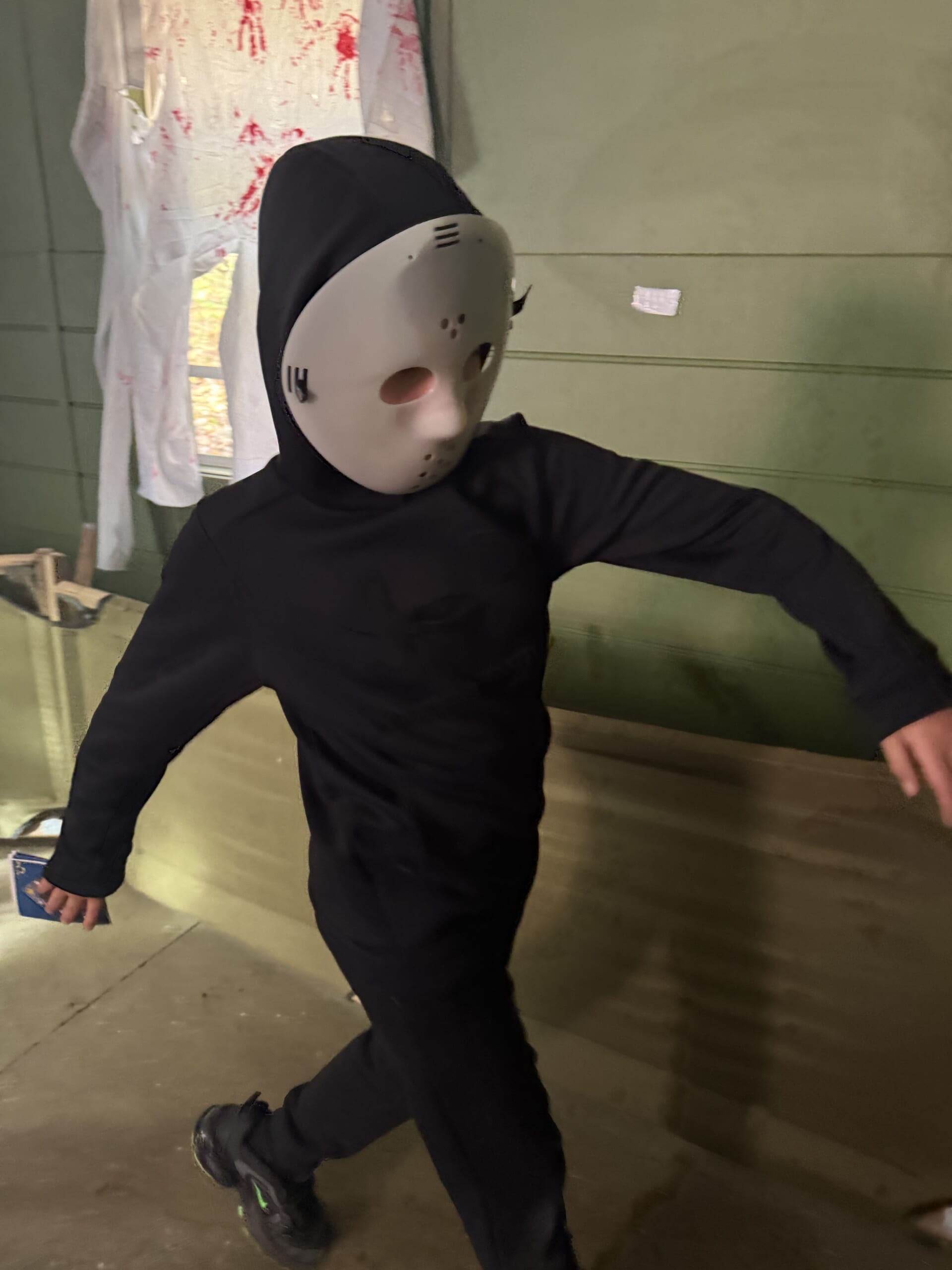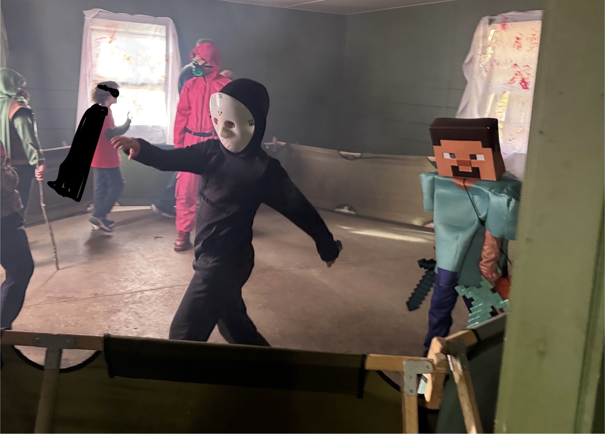 ツアーとして15分おきにリーダーについて森を歩いていくイベントで、カブスカウト年齢対象なのでお化けが追いかけてくることはなく、叫んだりしているお化けの横を見て歩く森のお化け屋敷でした。