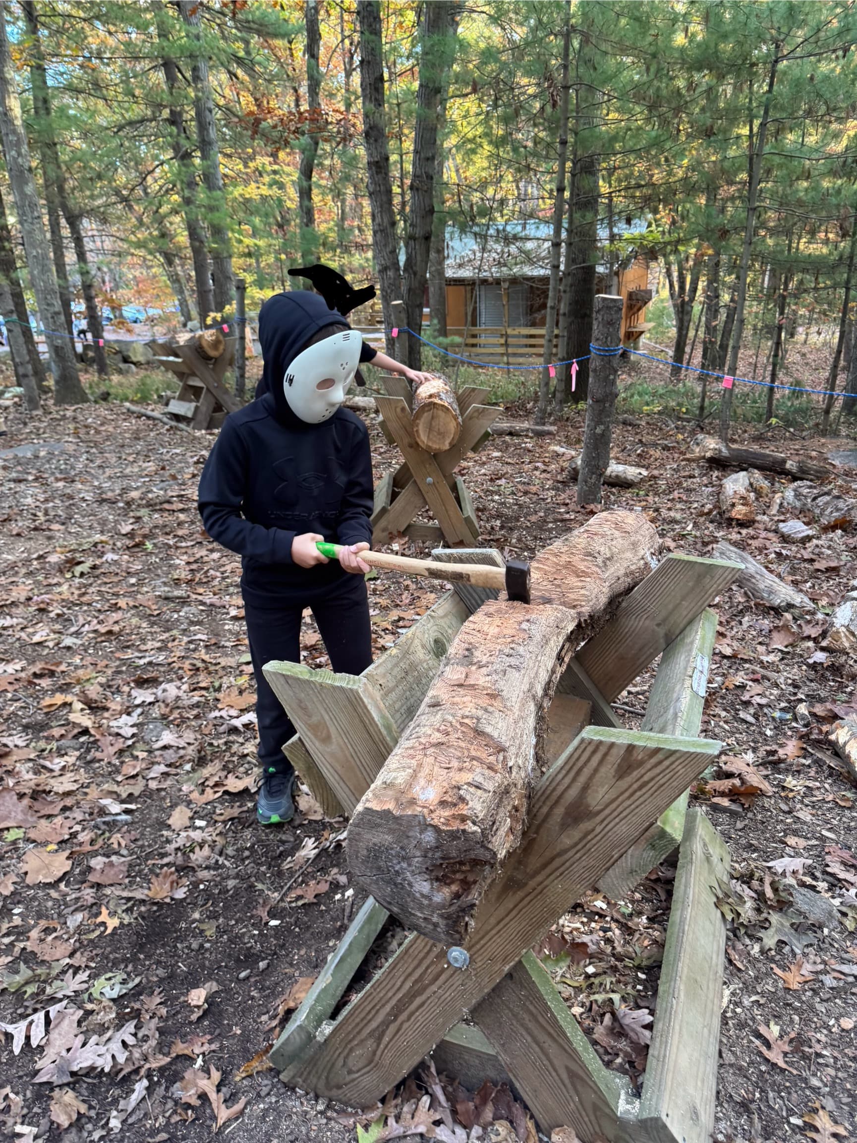 (ちゃんとお面は外して、ゴーグルをつけて斧を使いましたのでご心配なく〜💦)