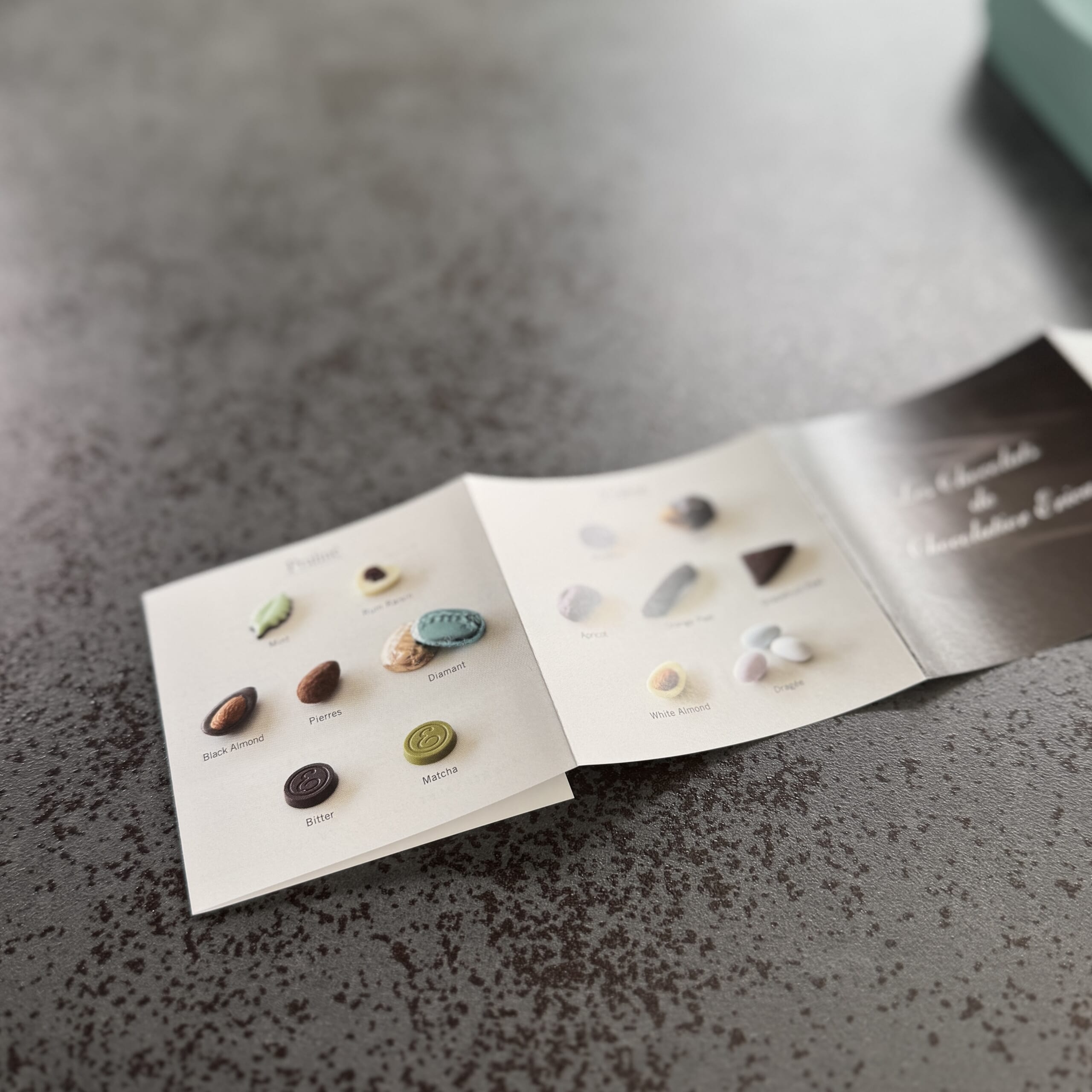 そしてボックスに添えられていたこちらを見ると、プラリネだけでもたくさんの種類が!