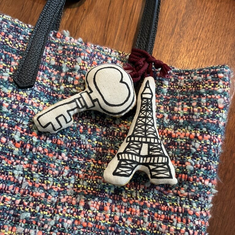 バッグもチャームをつけてアレンジ♫個展を手伝った友人のイラストレーター・MarineのチャームをW付け。ぷっくりしていて可愛い〜癒される❤︎