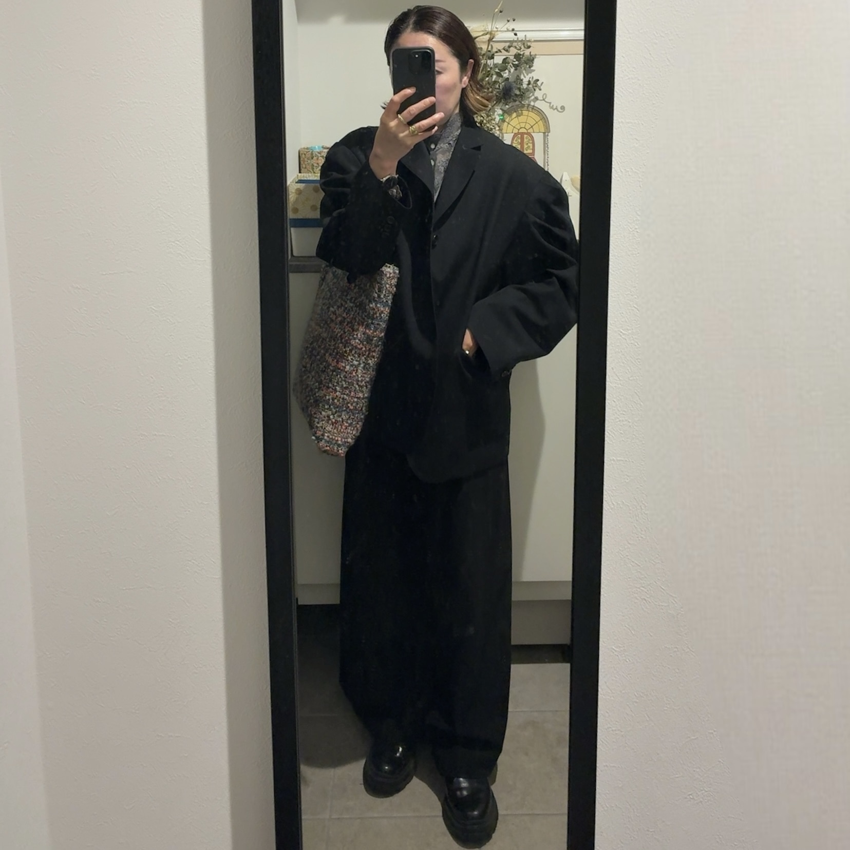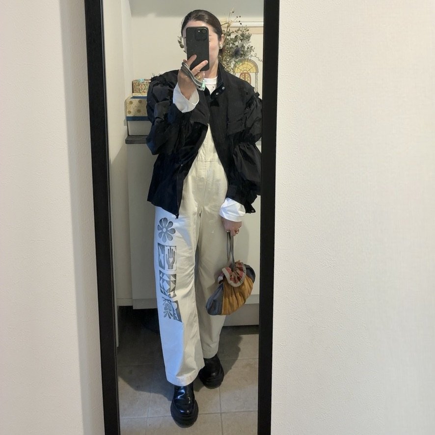 ブルゾン/CHIKA KISADA、カットソー/Holiday、オールインワン/ARGUE、バッグ/ヴィンテージ、ブーツ/ZARA