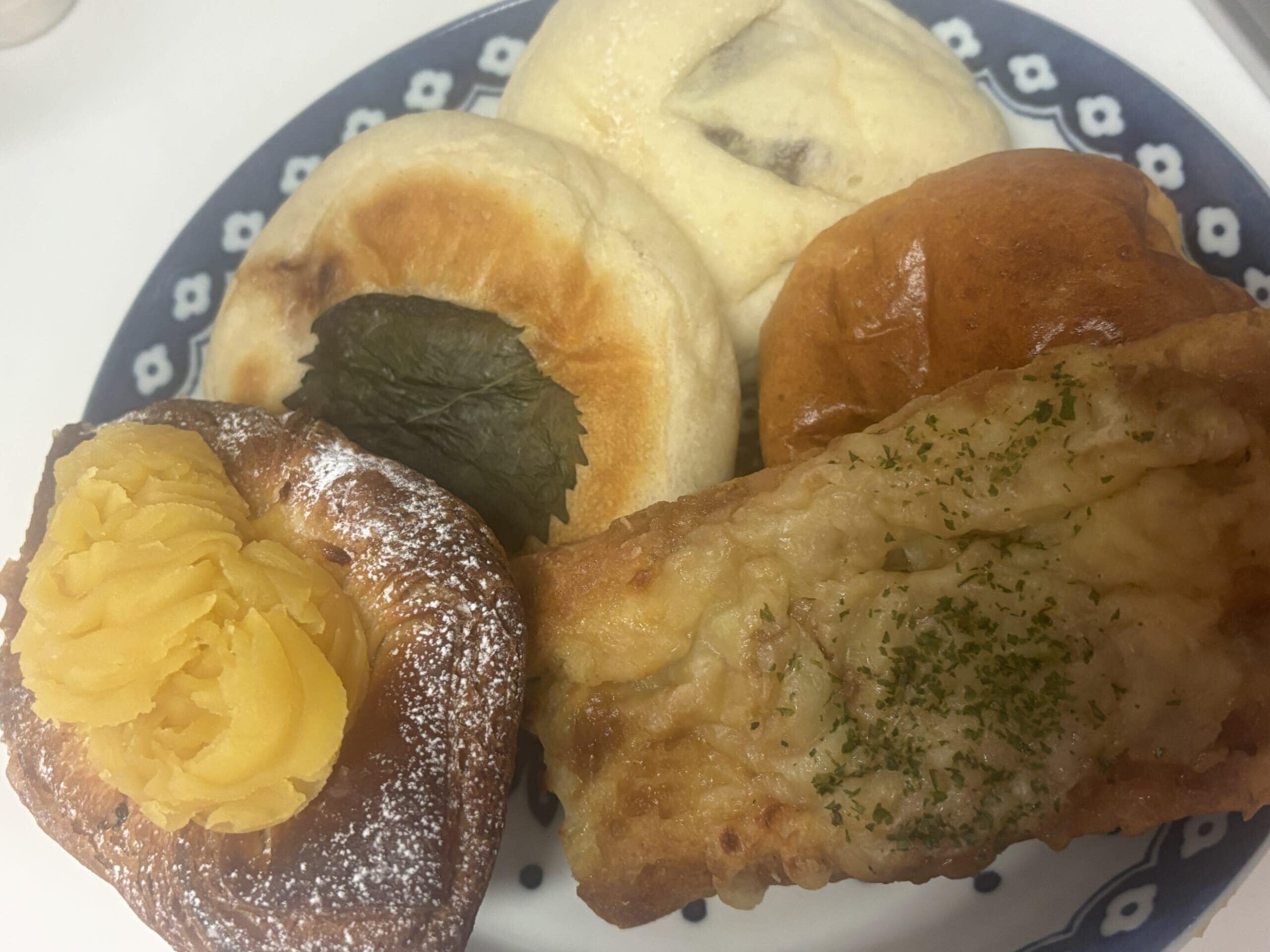 手前のサツマイモのデニッシュが特においしくって♡時間が経ってから食べても生地のサクサク感が残っていました。
