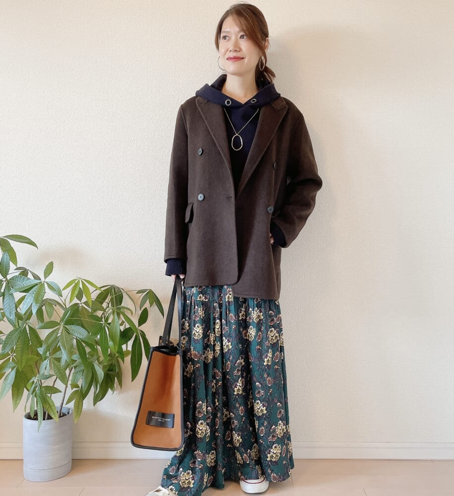ヒップがしっかり隠れるミドル丈なのでアウターとしてカジュアルに気軽に着まわせそうです。