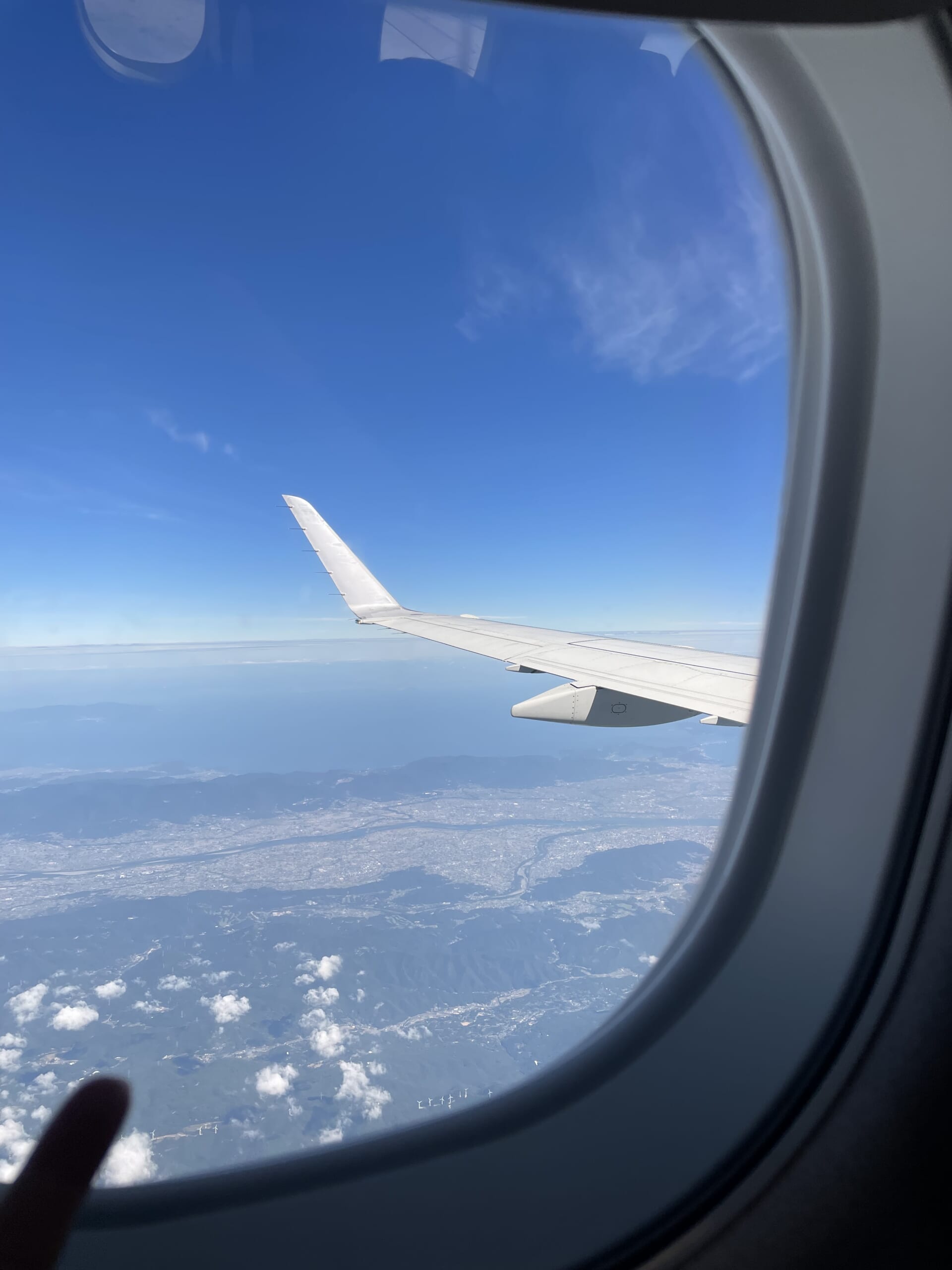 行きは伊丹空港まで飛行機、帰りはバスにしました。とても天気のいい日で飛行機からの眺めも抜群。気持ちいい〜🌞