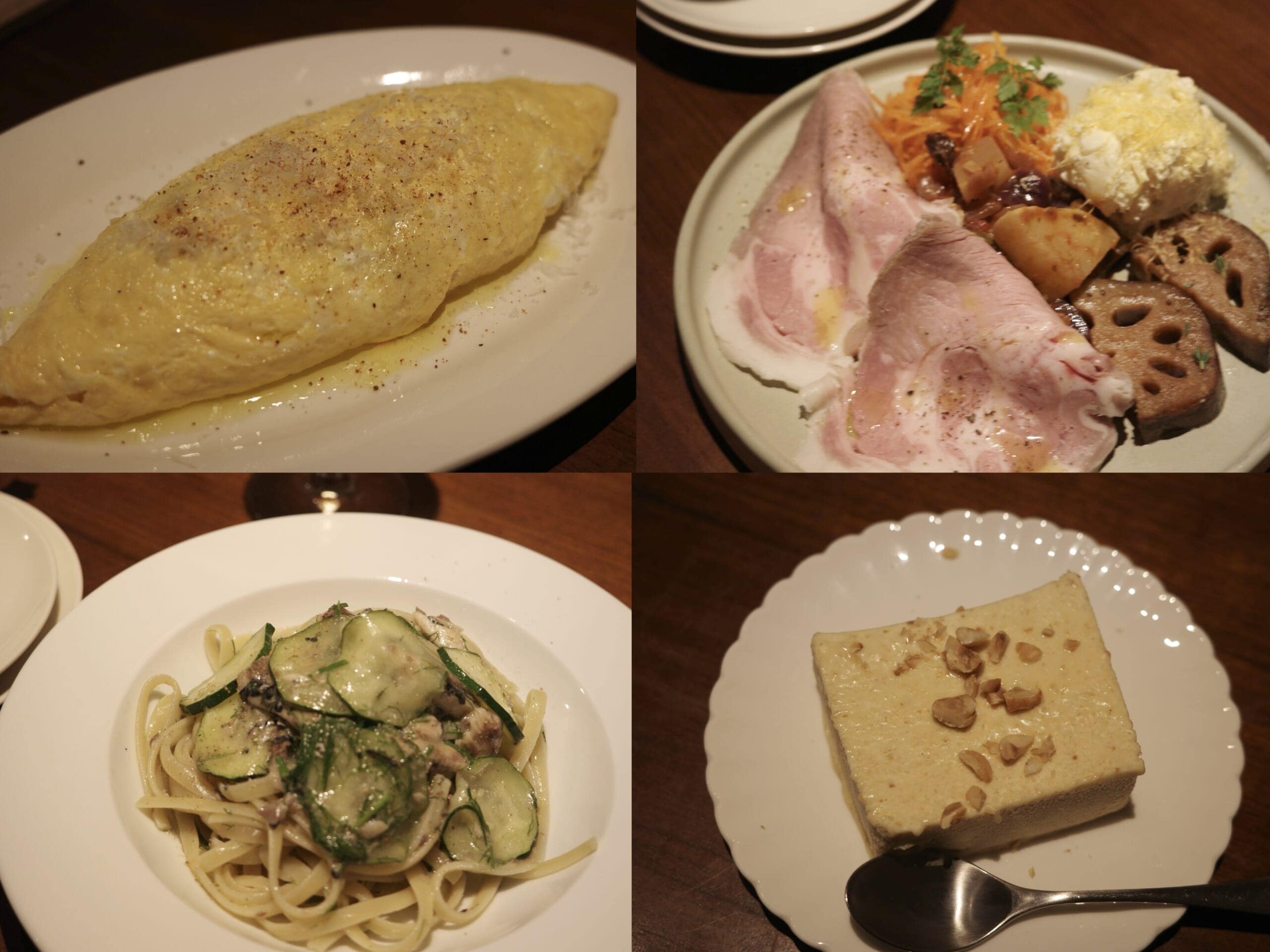 ぷりぷりのオムレツに、ピリッと塩味のきいたパスタに、自家製ハムに、デザートまで。どれをいただいてもおいしくて感激!