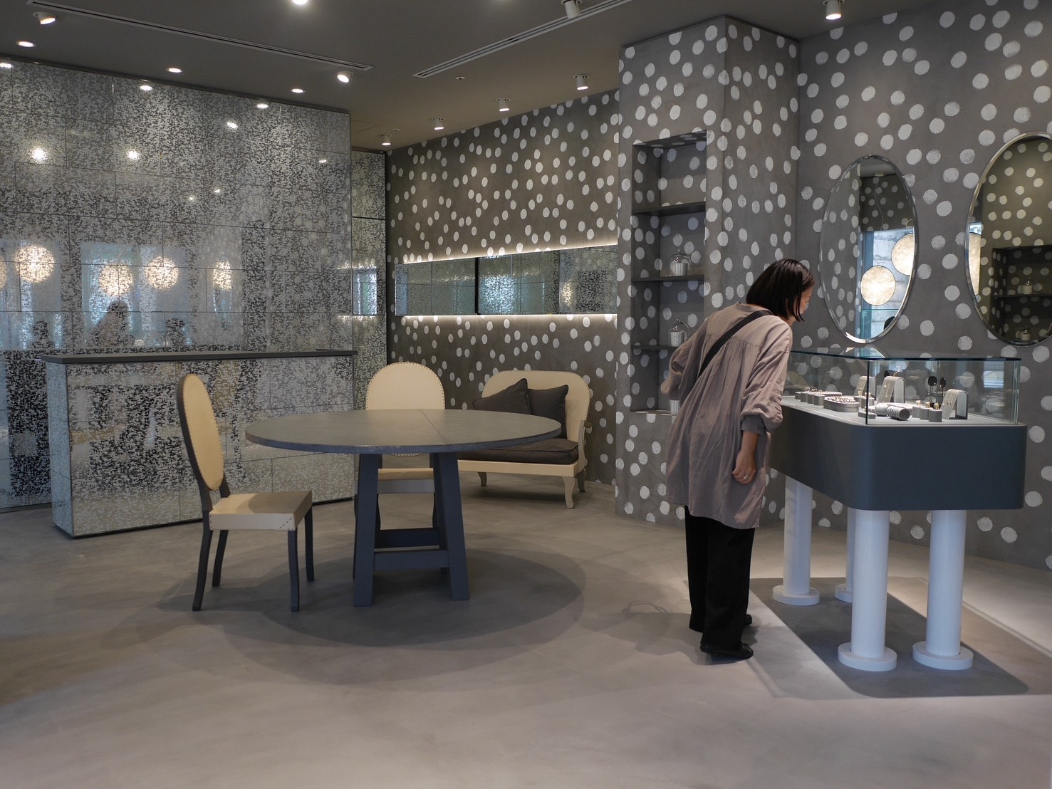 中央のテーブルでゆっくりと座りながらジュエリーが選べます。