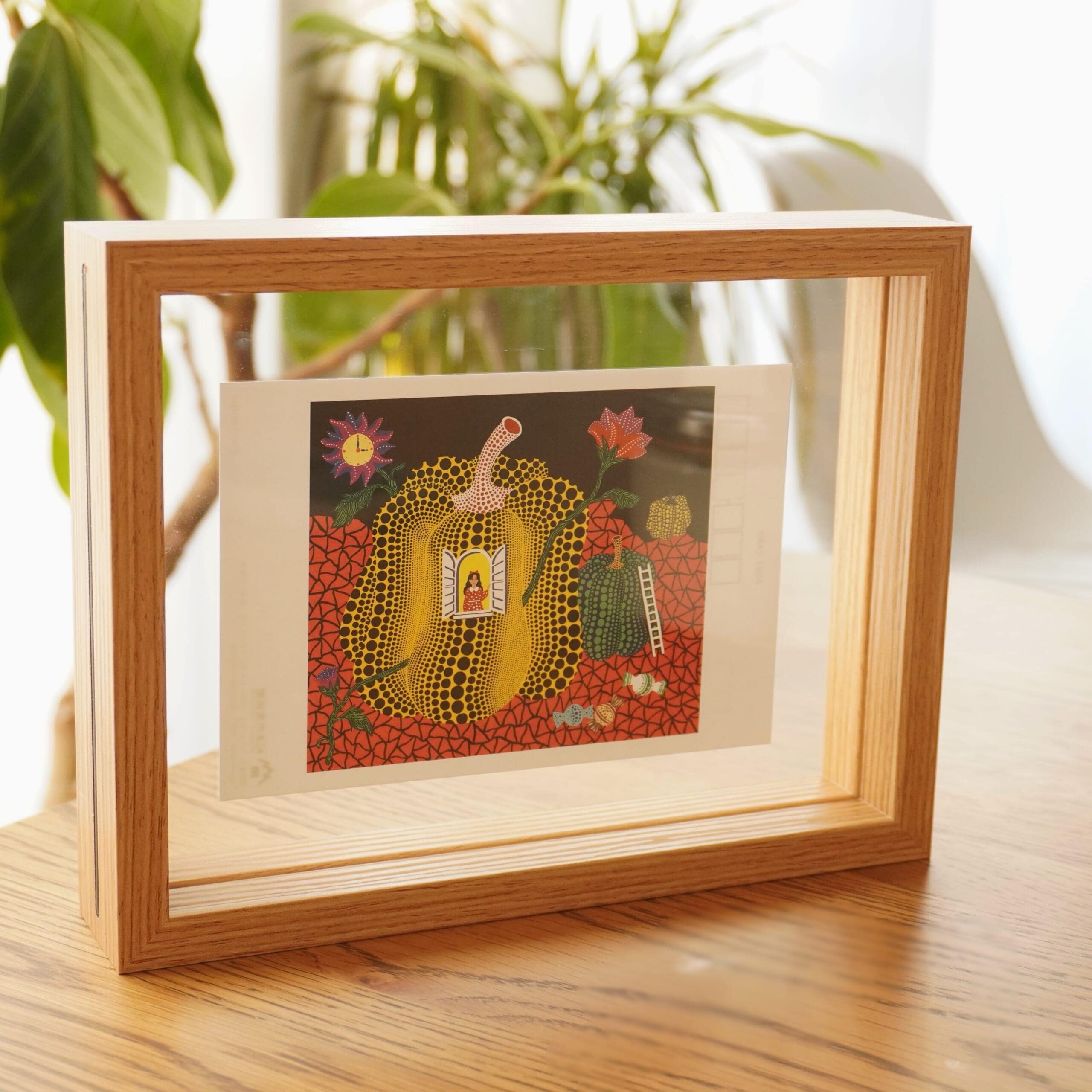 以前、購入した無印良品のアクリルフレームと悩んだのですが、ちょっと雰囲気を変えてみようと縁がナチュラルな木製のケースに。