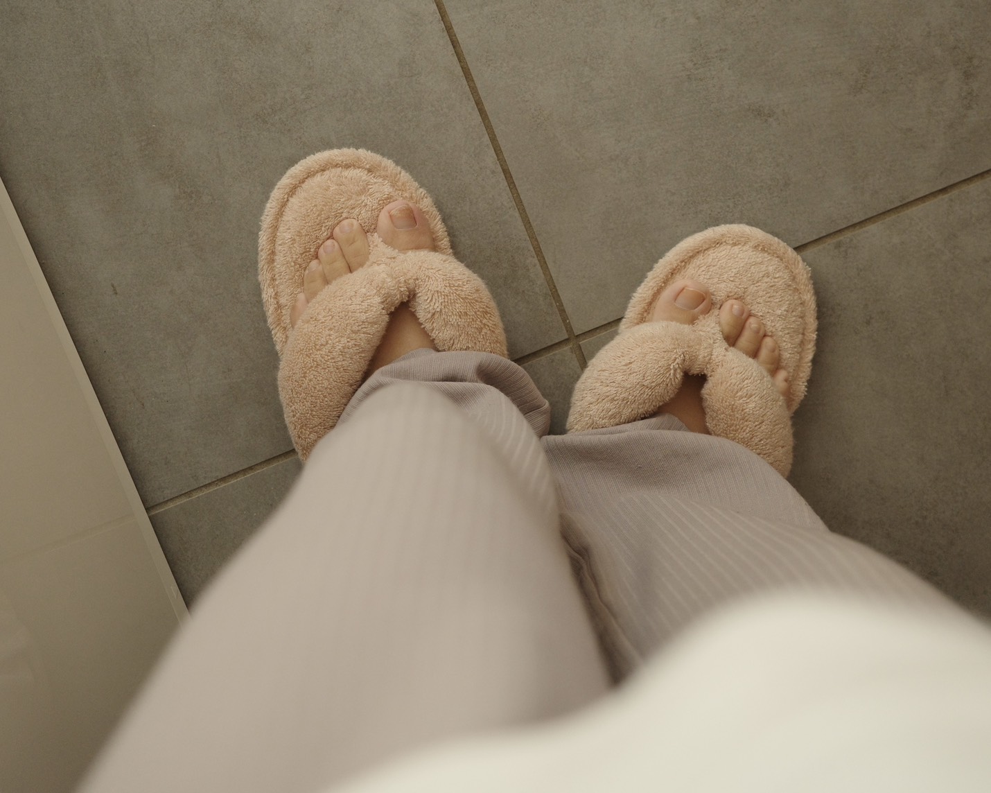 バブーシュがくたびれて破れてきたので、ひと目惚れしたもちもちスリッパも購入。 たまたま在庫のあった薄いピンクの子に決定! 足入れすると本当に気持ちよくて、、優しくなれそうなまろやかな気分に包まれます。