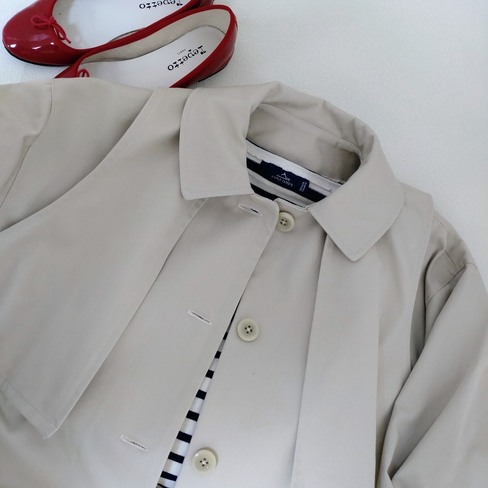 この本から『ベストつきロングコート』をSサイズで。ステンカラーコートに同素材のベストを重ねたデザイン。シンプルな中に少し個性があるデザインが好きです。