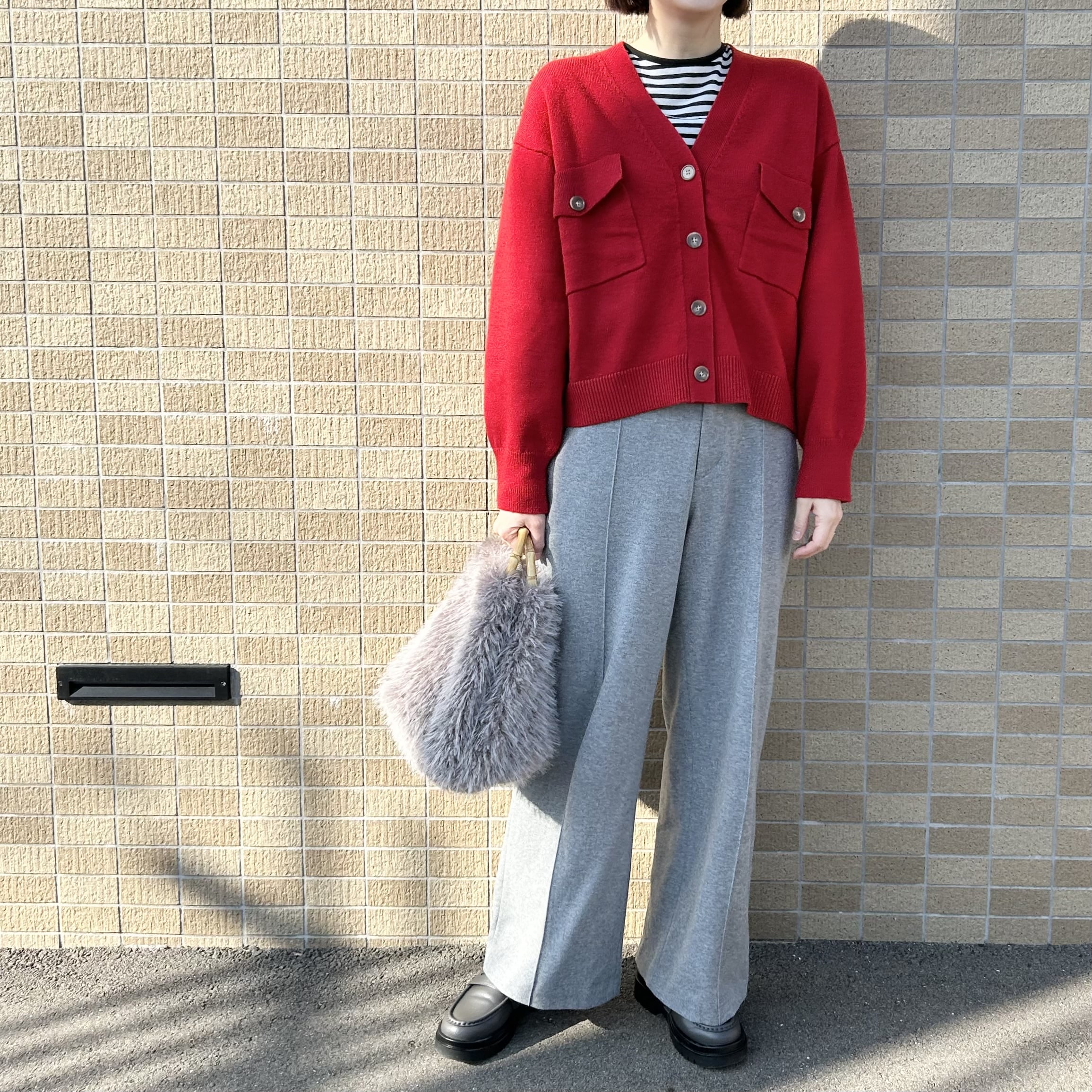 赤アイテム、タートルネックのセーターと靴下しかなかったんですが、今季はこのカーディガンを投入したので、流行りのブラウンとも合わせて着ていきたいと思います💕