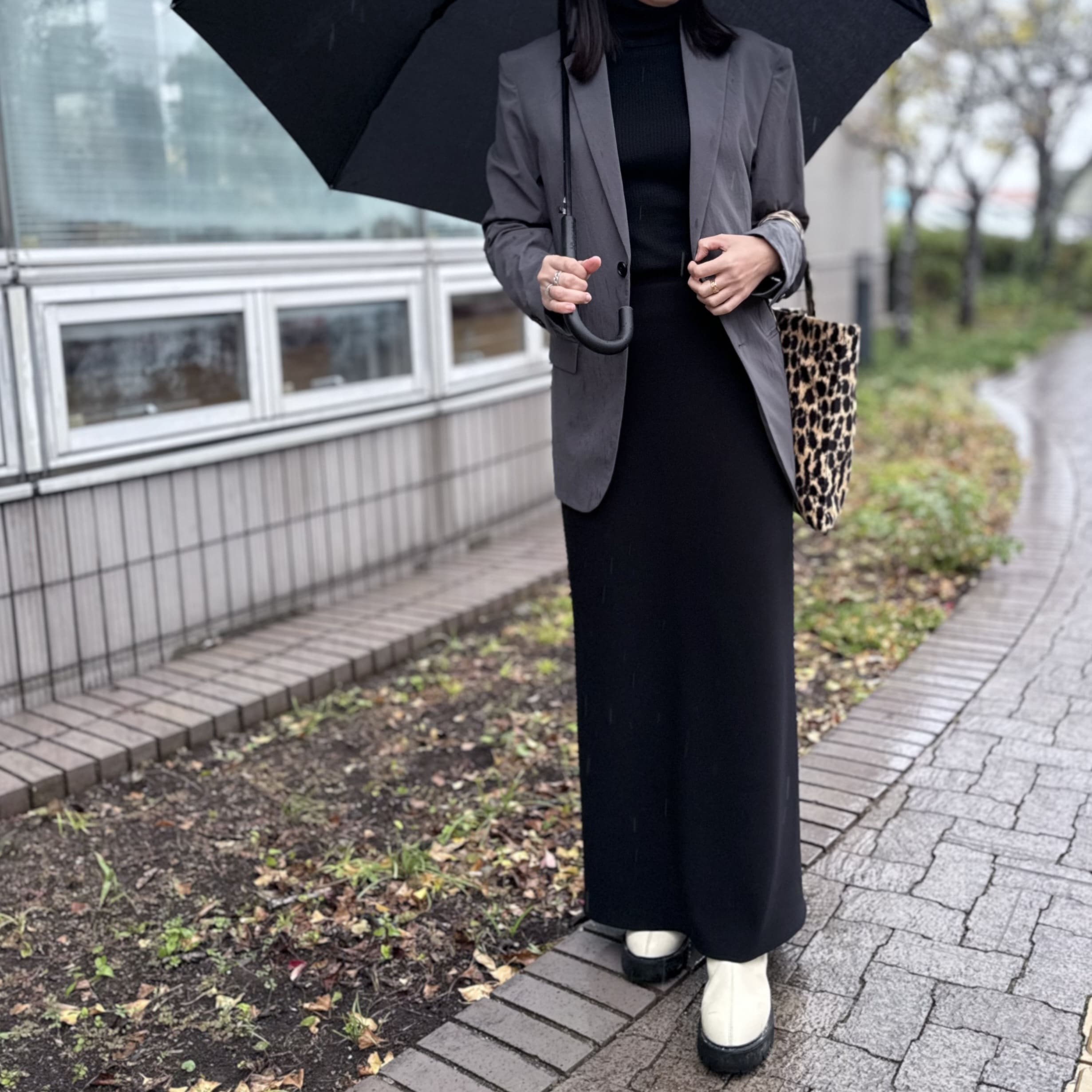 雨で気分も洋服も暗くなりがちな時、足元に白を取り入れると気持ちもなんだか少し明るくなる気がします♩
