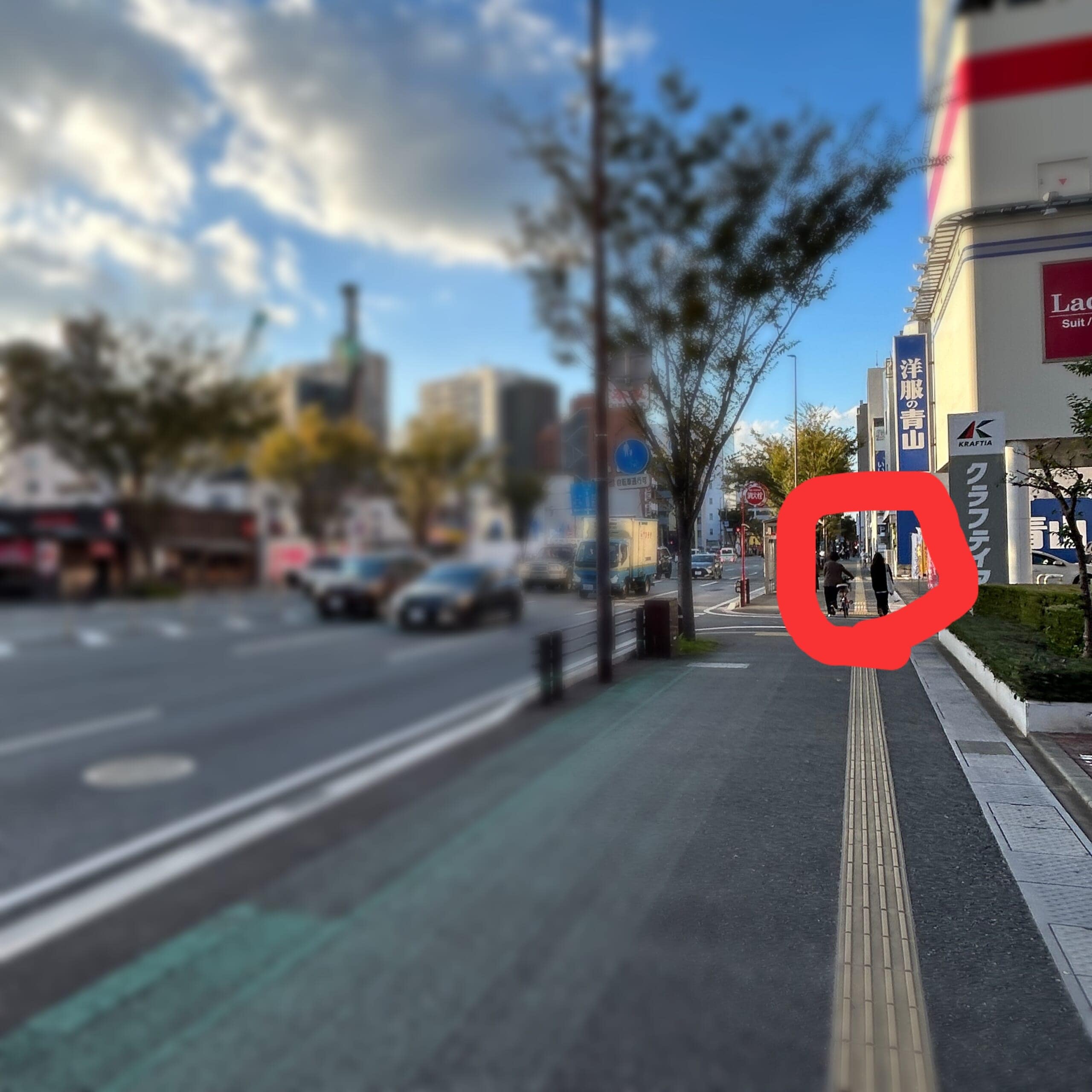 2:2で歩いてたら…この差ができていた。赤い丸で囲っているのが、あきさんとりーぬさんです。け、決して私たちの足が遅いわけではないんだからねっ!🤪