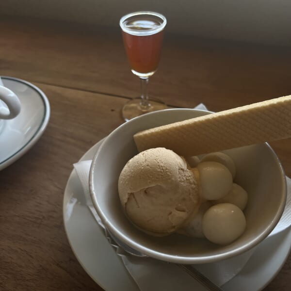 可愛らしいグラスに入った、とろ~りとしたほうじ茶あん…♩