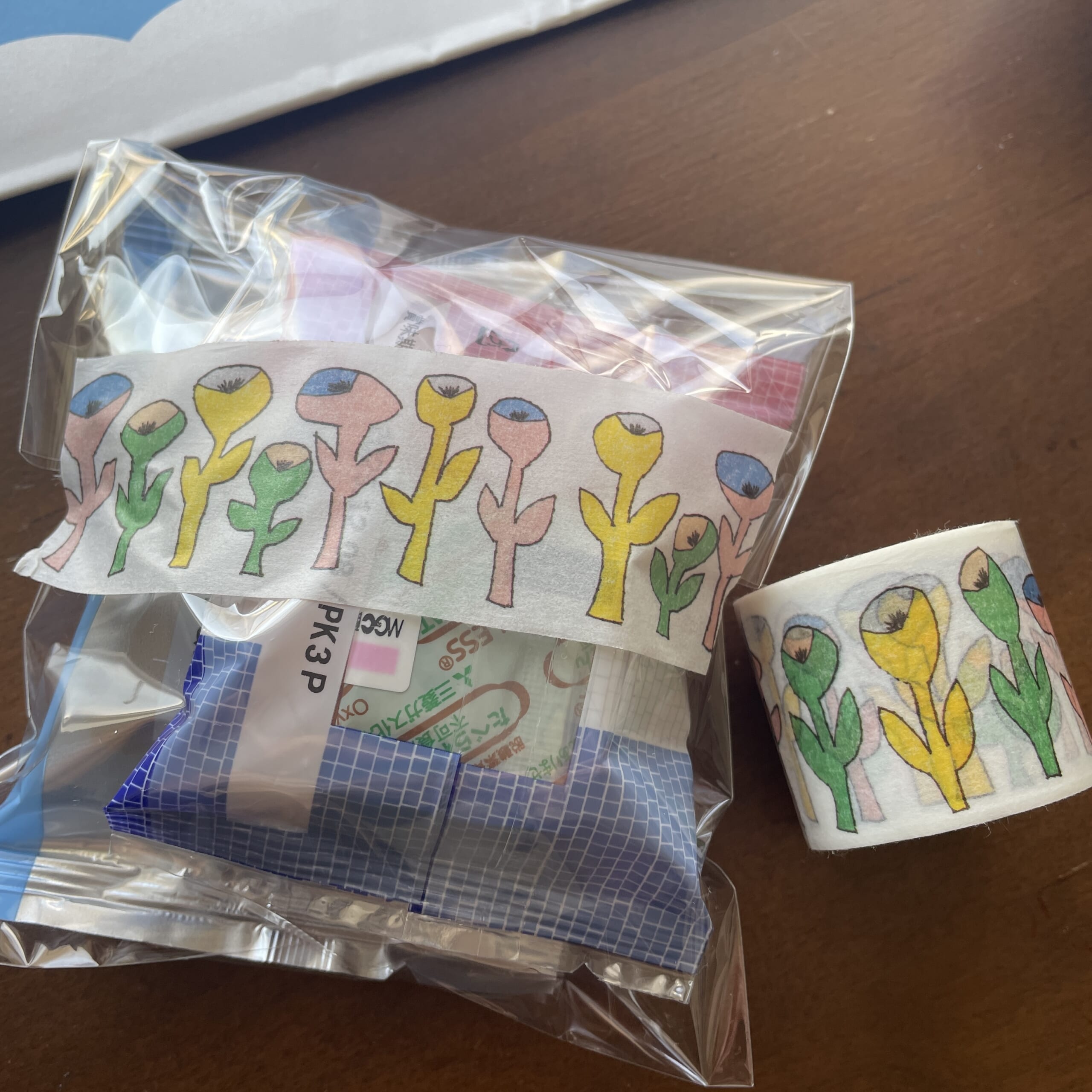 ラッピングはふつうのビニール袋にミナ・ペルホネンのマスキングテープを。