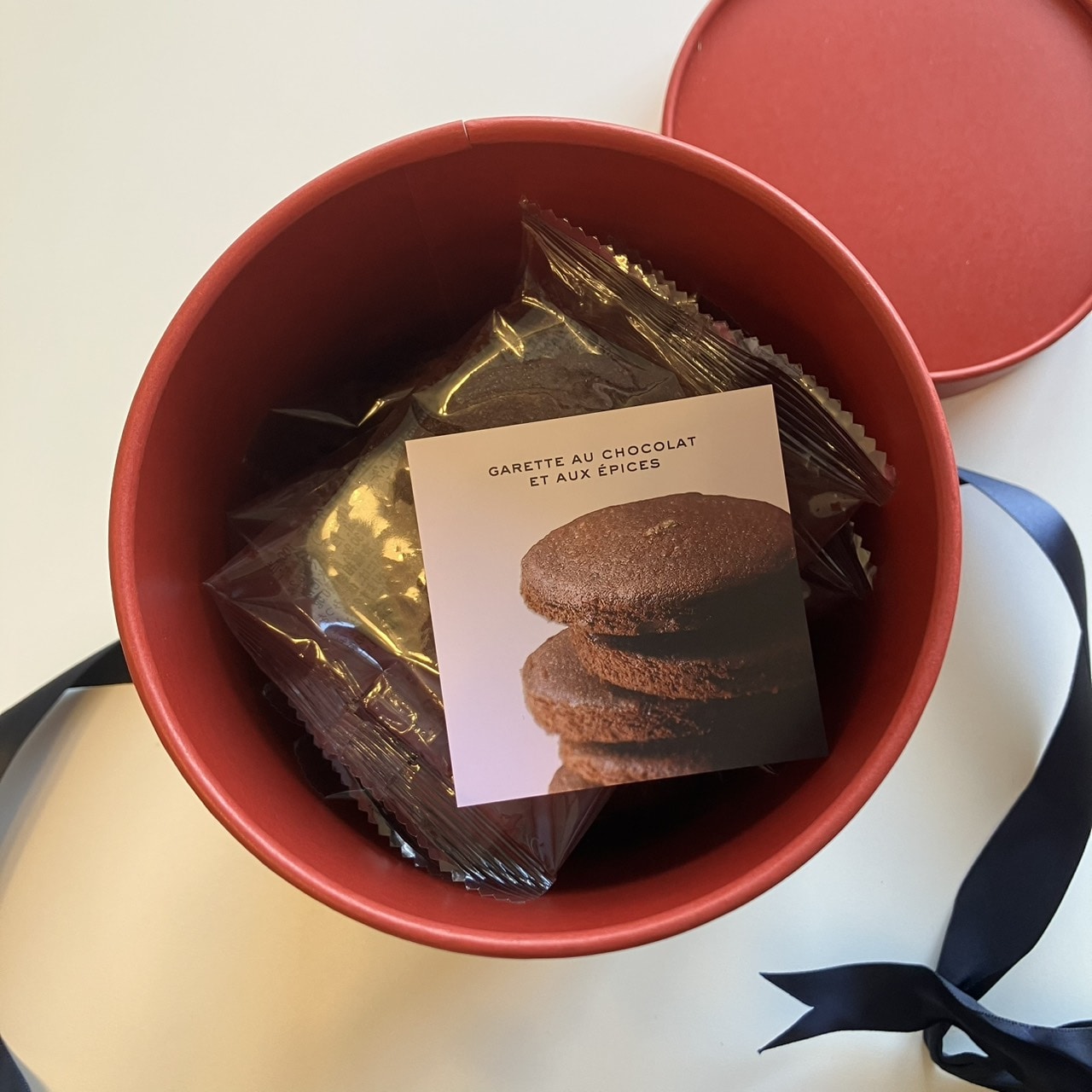 ピエール マルコリーニこだわりのクーベルチュールを使用して焼き上げたスパイシーなガレットで、紅茶やコーヒーはもちろん、ワインやウィスキーにもきっと合う。