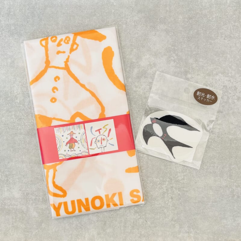 手ぬぐいは、宮沢賢治の絵本「雨ニモマケズ」のイラストのもの。
