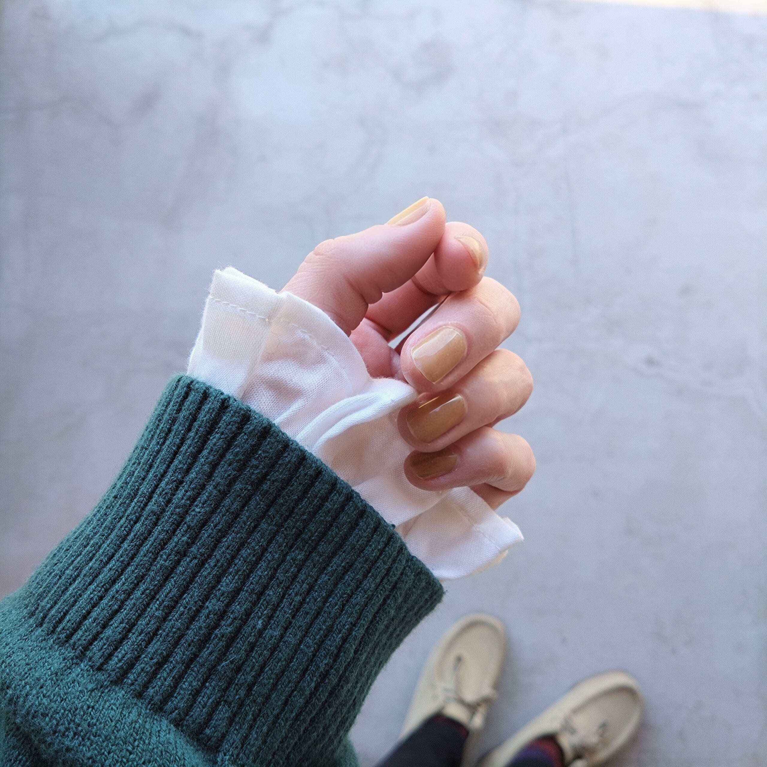 ニットはちょい腕まくり気味にしてたわませるのが好き。