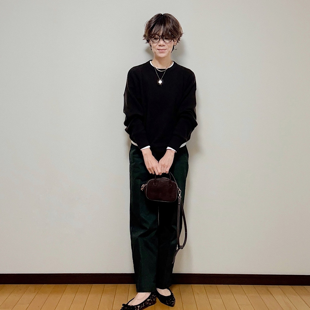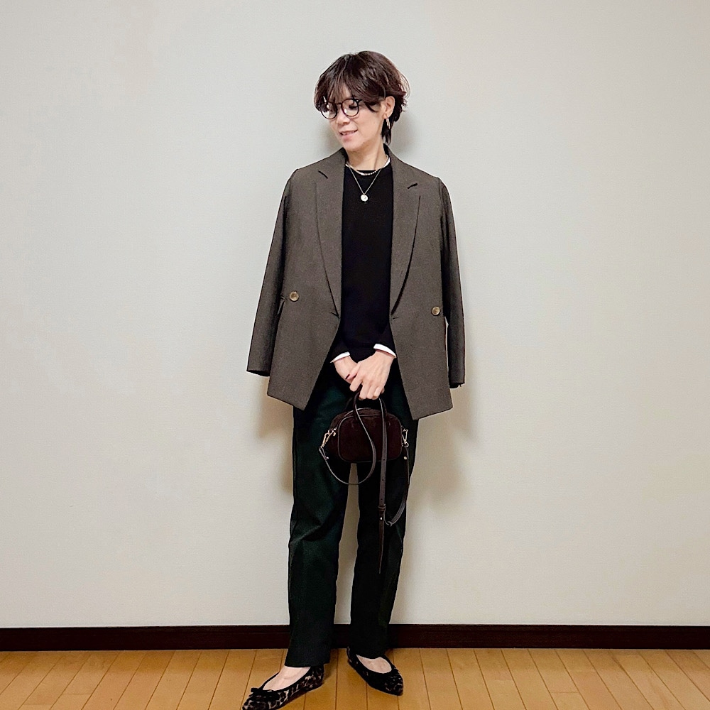 あとはバッグや靴(レオパード柄で女性らしさをプラス)で品よく仕上げてみました。
