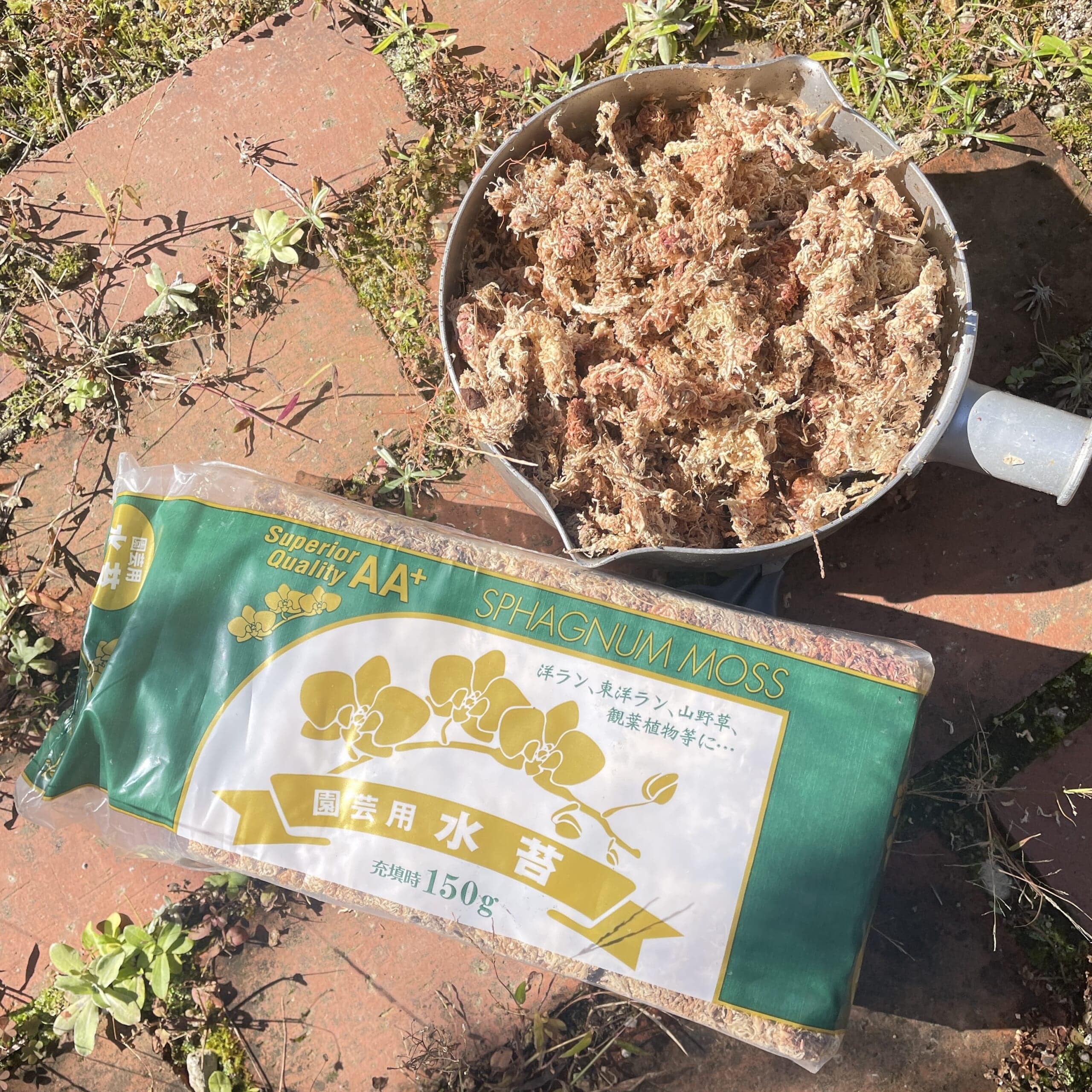 購入時は、乾燥しているので、苔を水につけて戻して使用します。煮沸消毒する方もいるそうですが、私はそのまま使ってます。