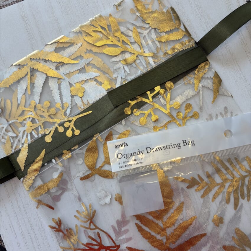 プレゼント交換ということで、一目で商品がわかるように透け感のあるラッピング用品を探していたところ、オーガンジー巾着が目に入りました。