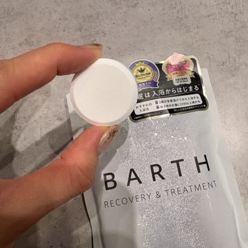「BARTH」は、独自技術でお湯を中性に保ちながら、疲労回復効果のある重炭酸イオンを多く長く溶け込ませることで温浴効果を高めてくれるというタブレット型の入浴剤です。