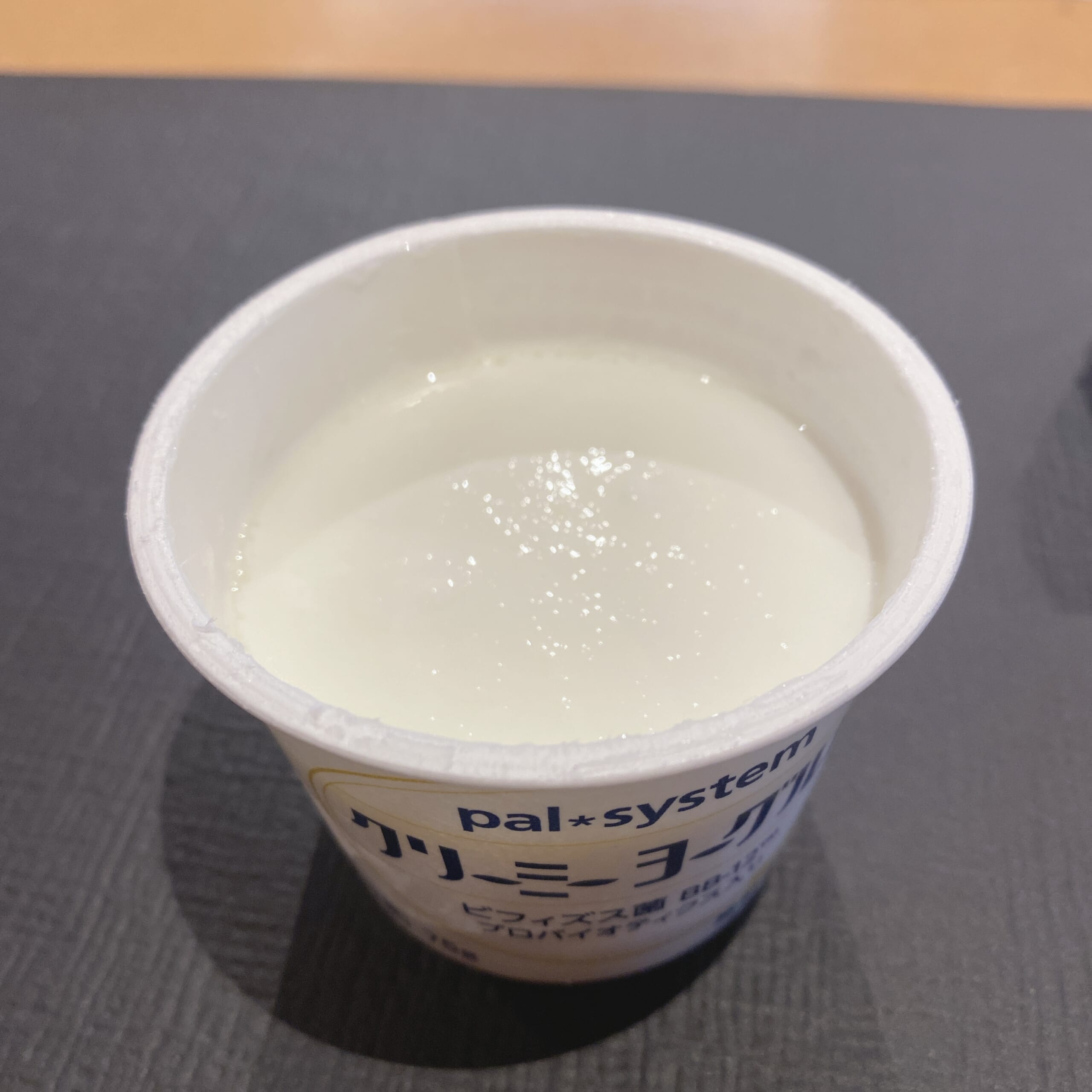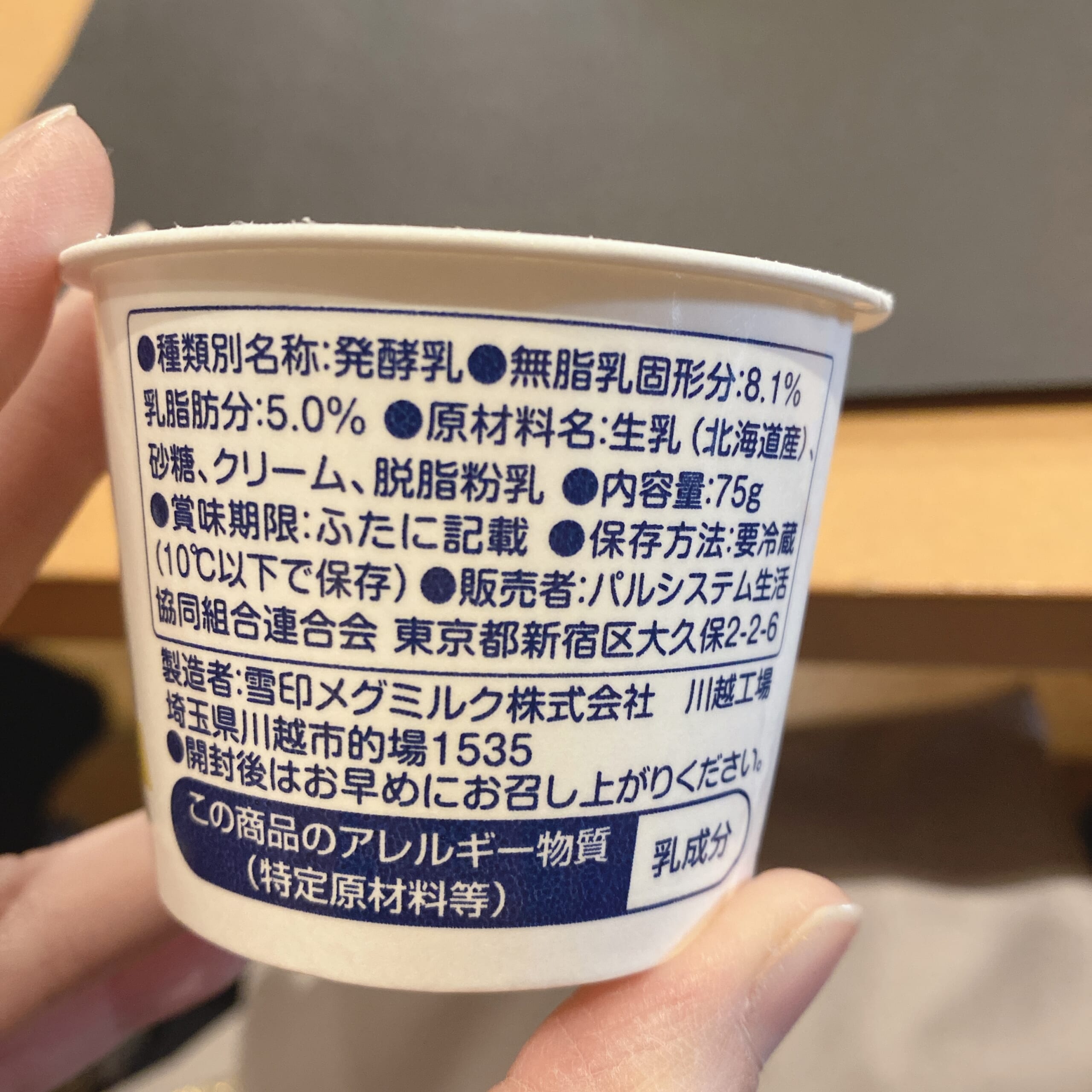 こちらのヨーグルトは乳酸菌の力だけで固めており、 ゼラチン・寒天・安定剤を使っていないんだそう。なので、ツルツルプルプルというより とろっとなめらかな食感。生乳も多く使われていて脱脂粉乳も原材料に使われています。