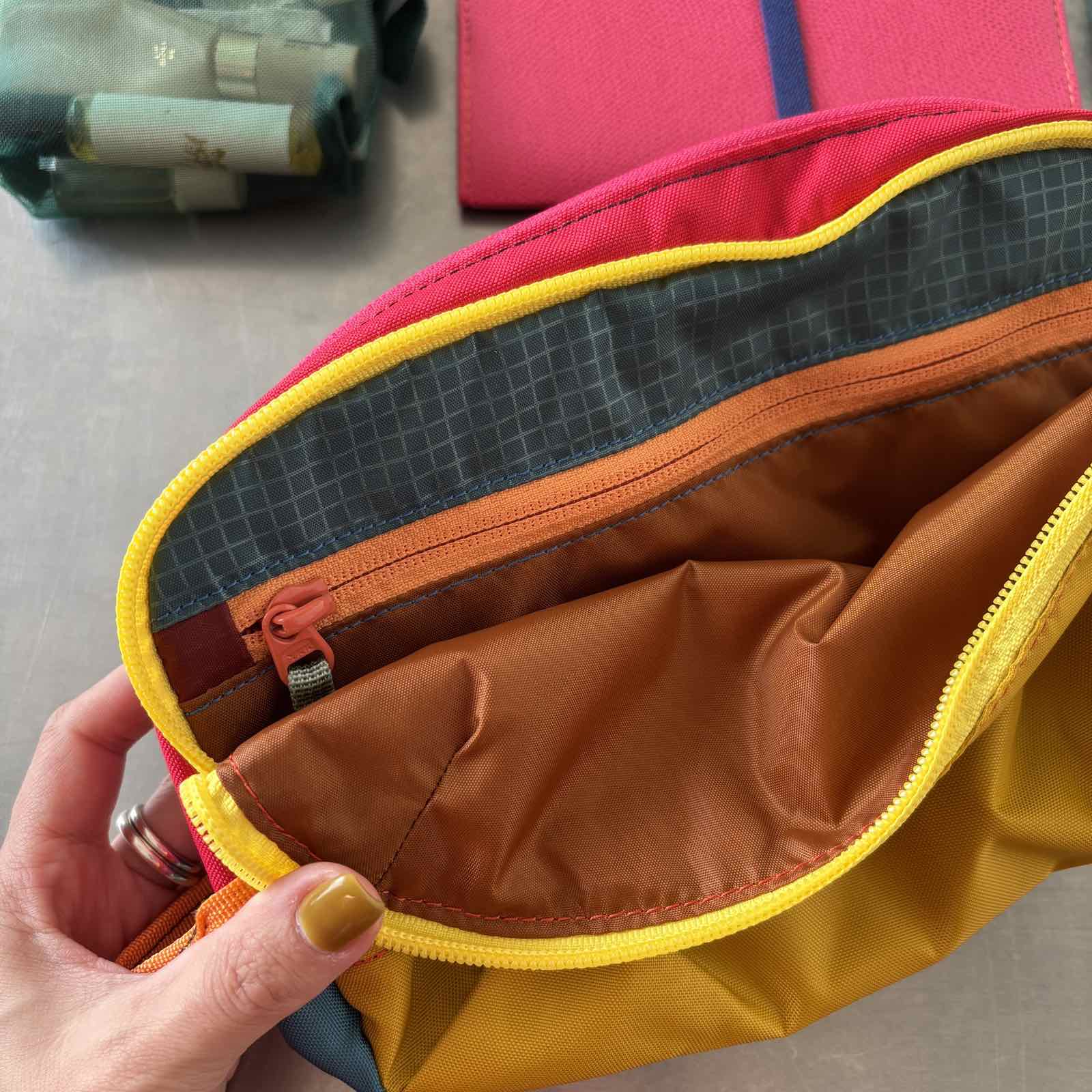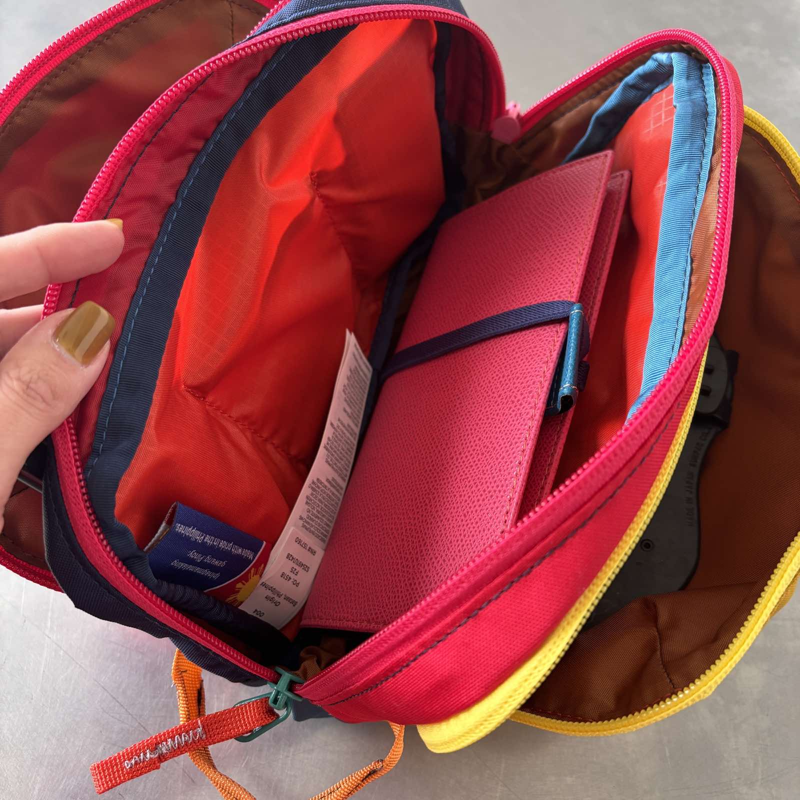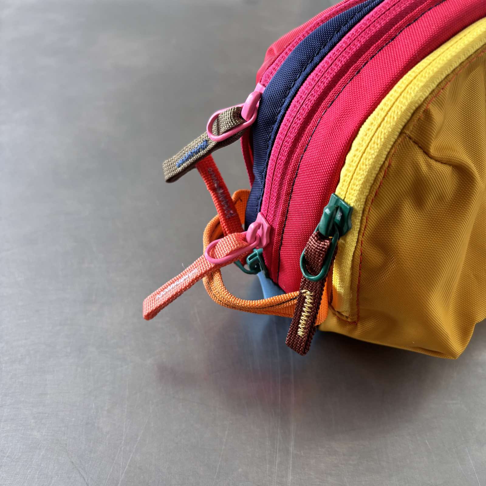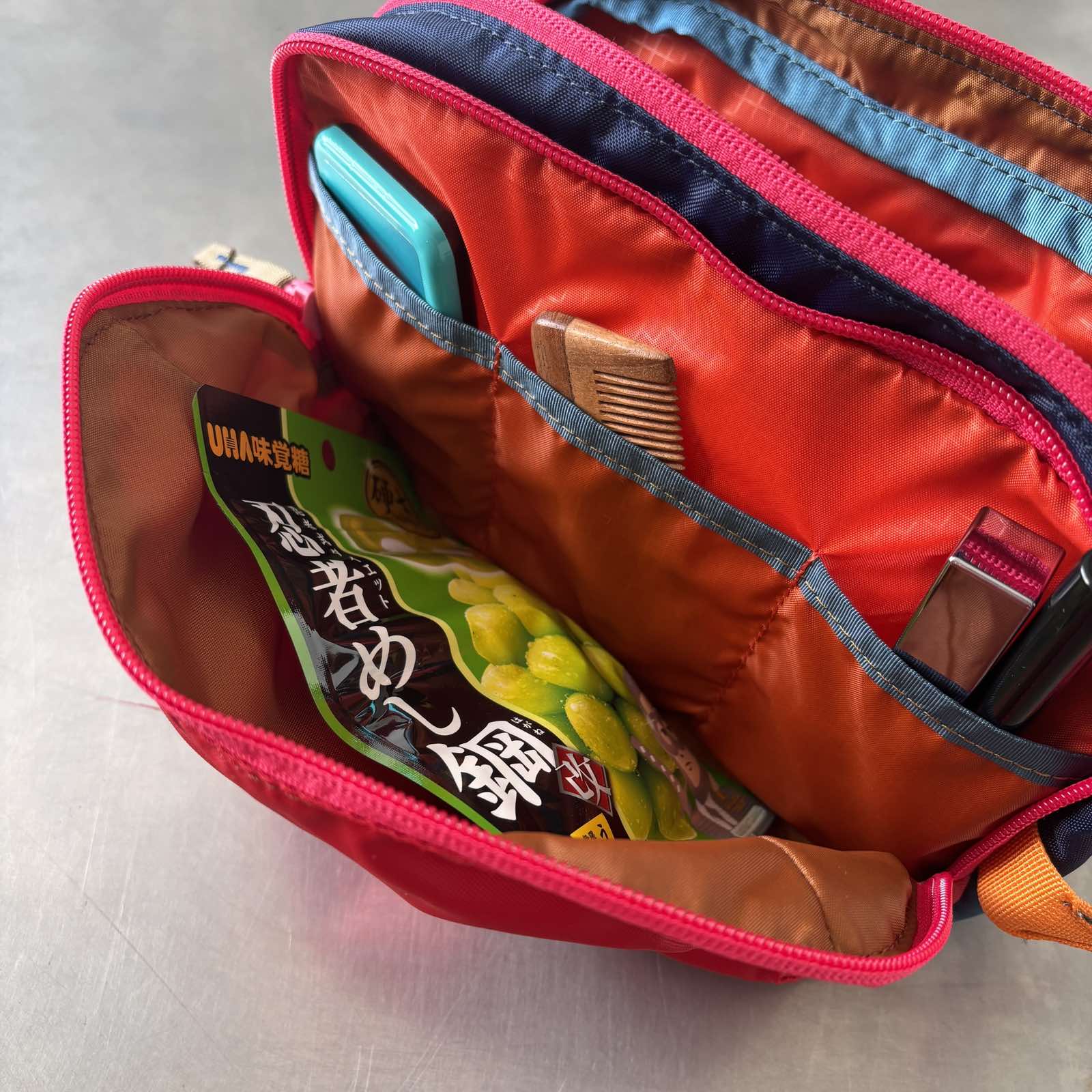 そして、この残布だから叶う、このファスナー細部まで色とりどり!楽しくなります。そしてこの配色の違いが「どこに何入れたっけ?」を防いでくれています。