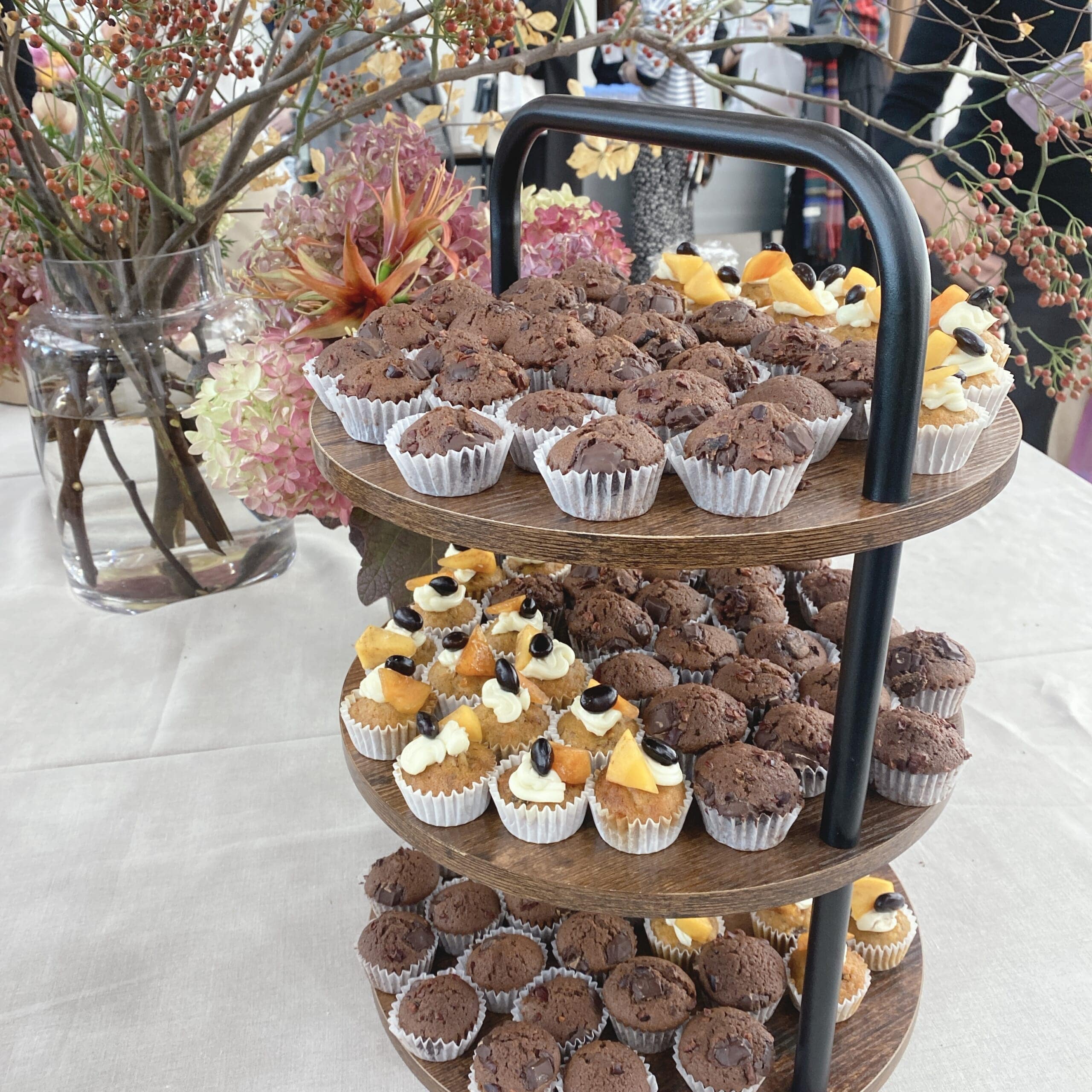 お花の装飾は目黒にある生花店UEUVRE(ウヴル)さん。今の季節にピッタリの彩り!テーブルにお花があるだけですごく華やかに。