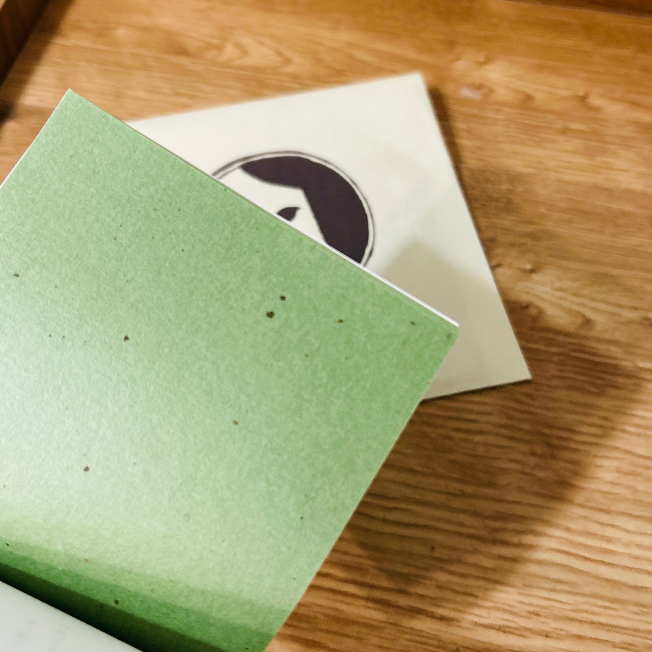 よーじやといえばの定番あぶらとり紙に京都・宇治抹茶の茶葉を漉き込んだもので、紙自体も深みのある緑色をしています。
