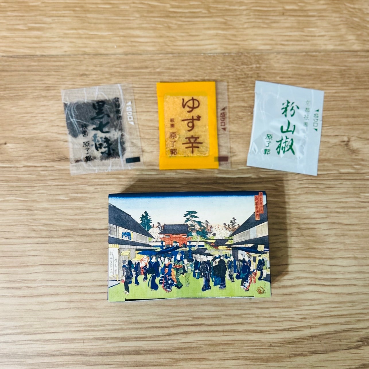 京都・八坂に本店を構える黒七味で有名な老舗「原了郭」の薬味3点セットです。
