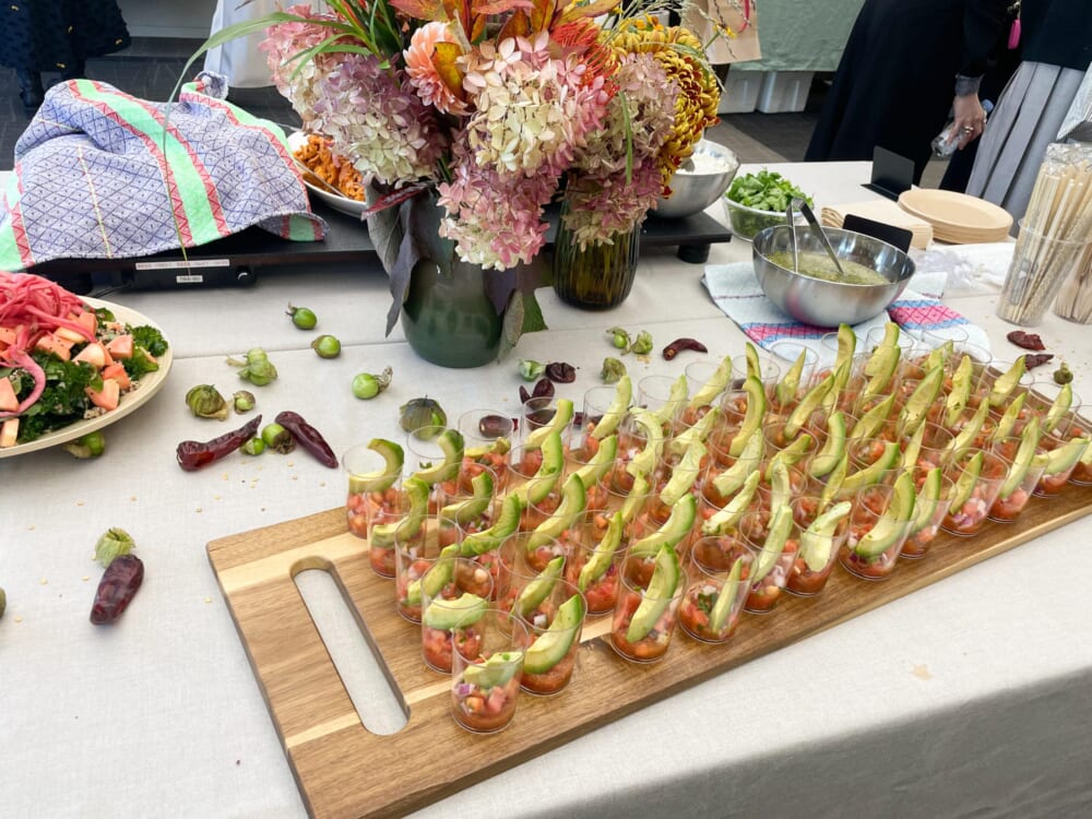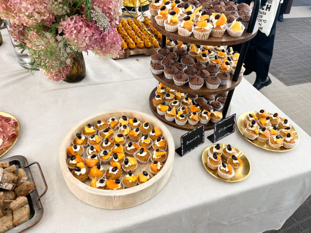 会場のフラワーアレンジメントも深い色味で素敵でしたし、ケータリングもどれも大変おいしかったです。