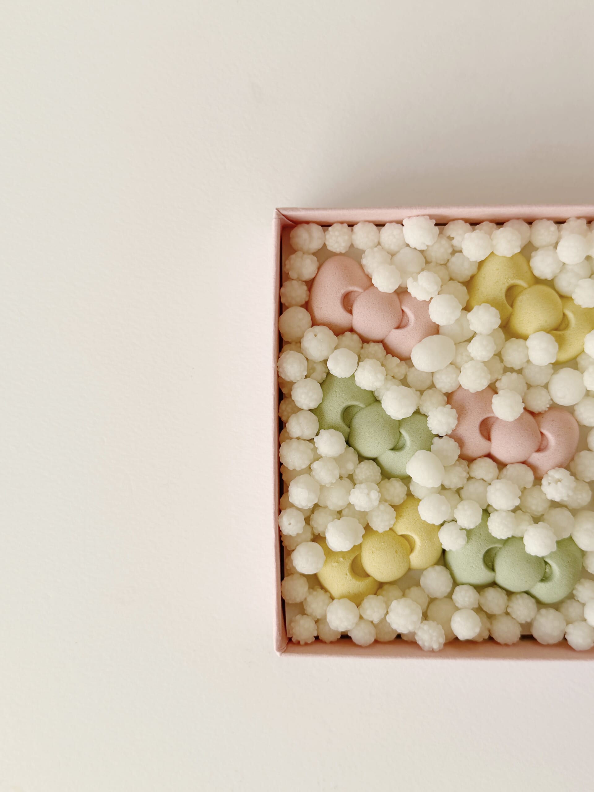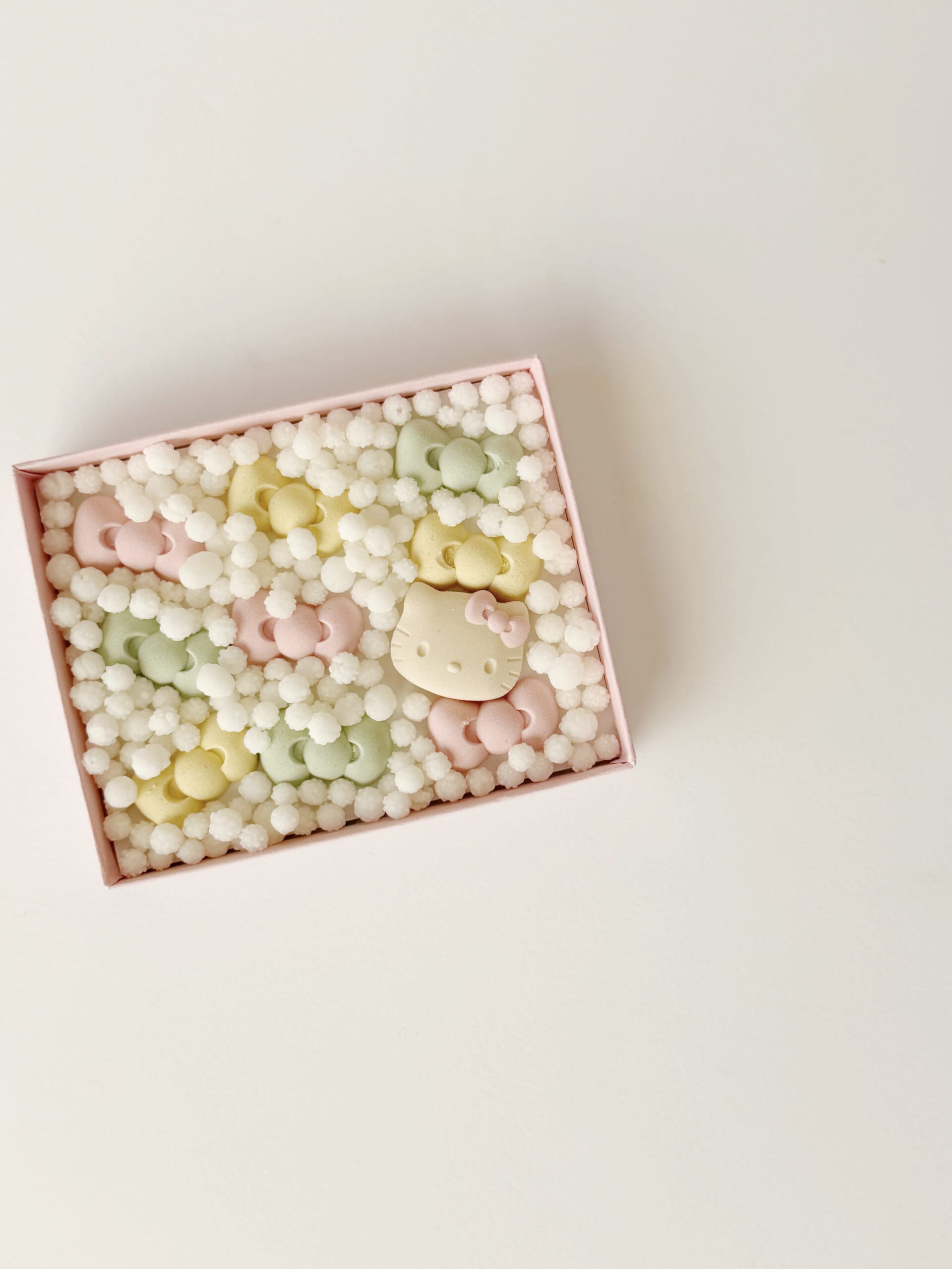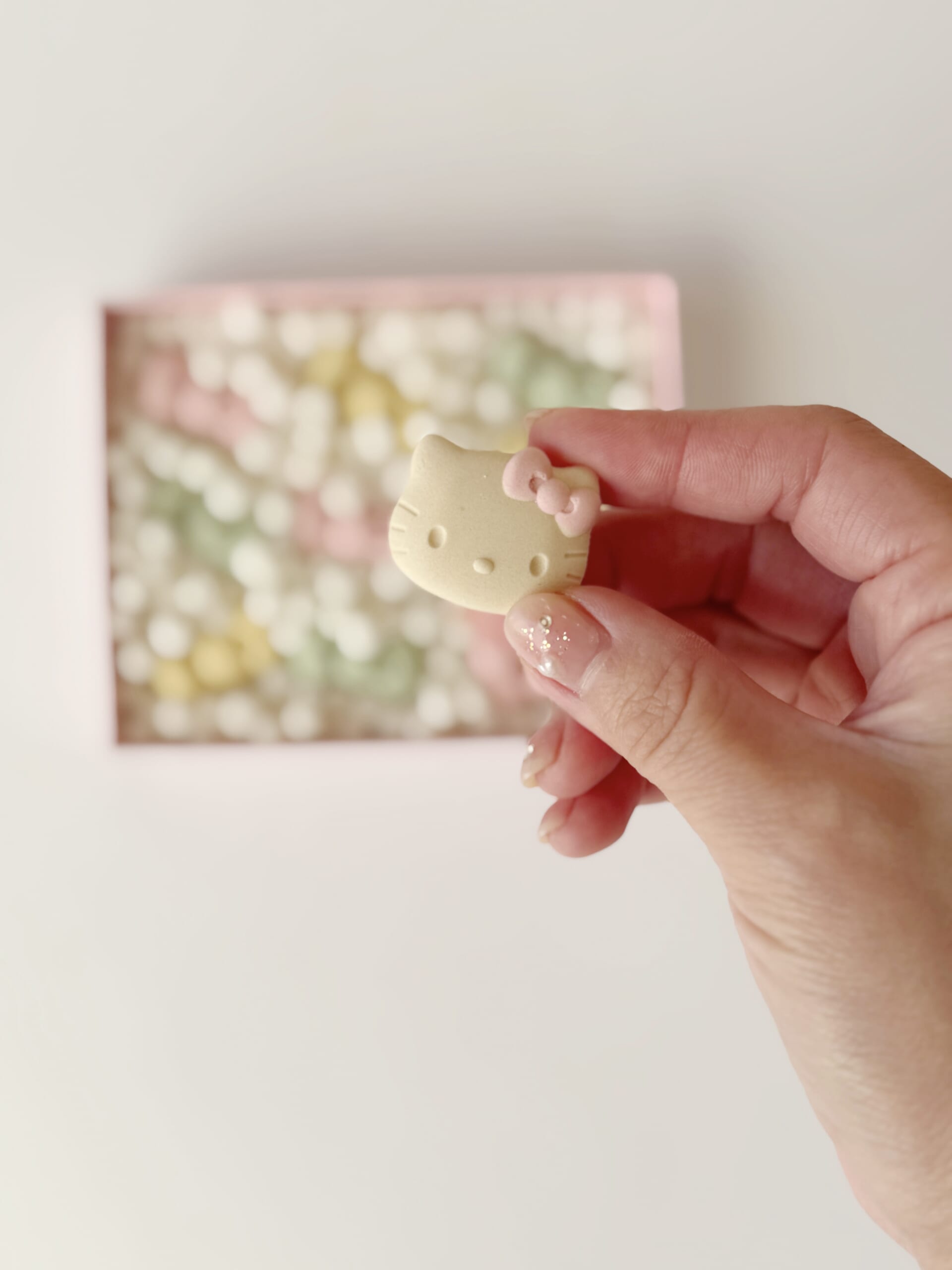 箱をそっと開けた瞬間、ふわっとあらわれるキティちゃんのお干菓子……🐱💗
