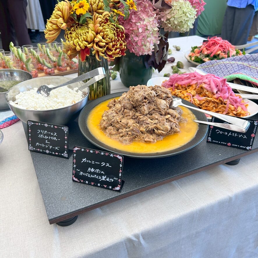 装花も美しかったのですが、その下に広がるお料理も眼福でした〜。ケータリングは、【kitchen COISHI(コイシ)】さんによるもの。