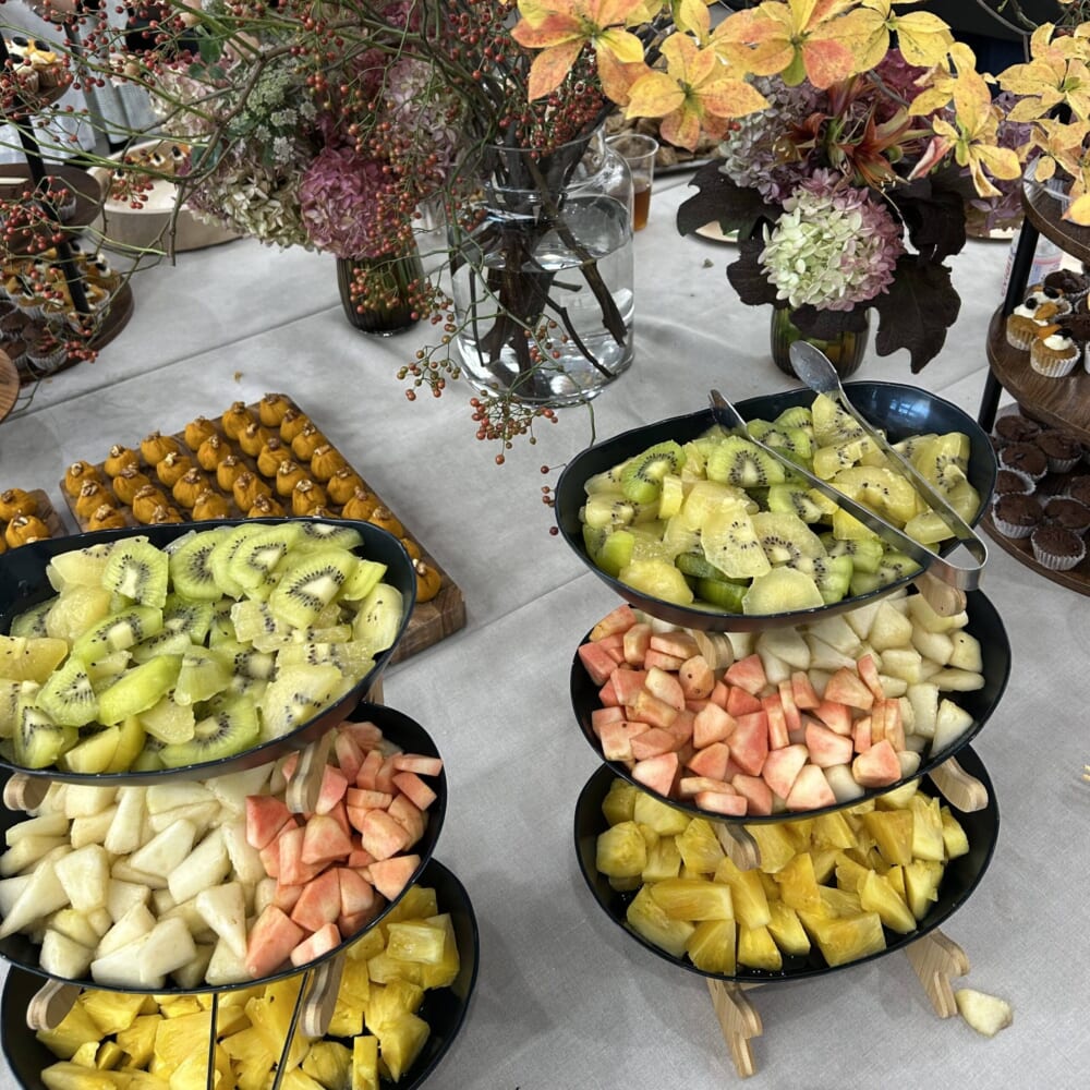 会場には今年もおしゃれなケイタリングが並び、テンションUP!(お花も素敵ですよねー✨)