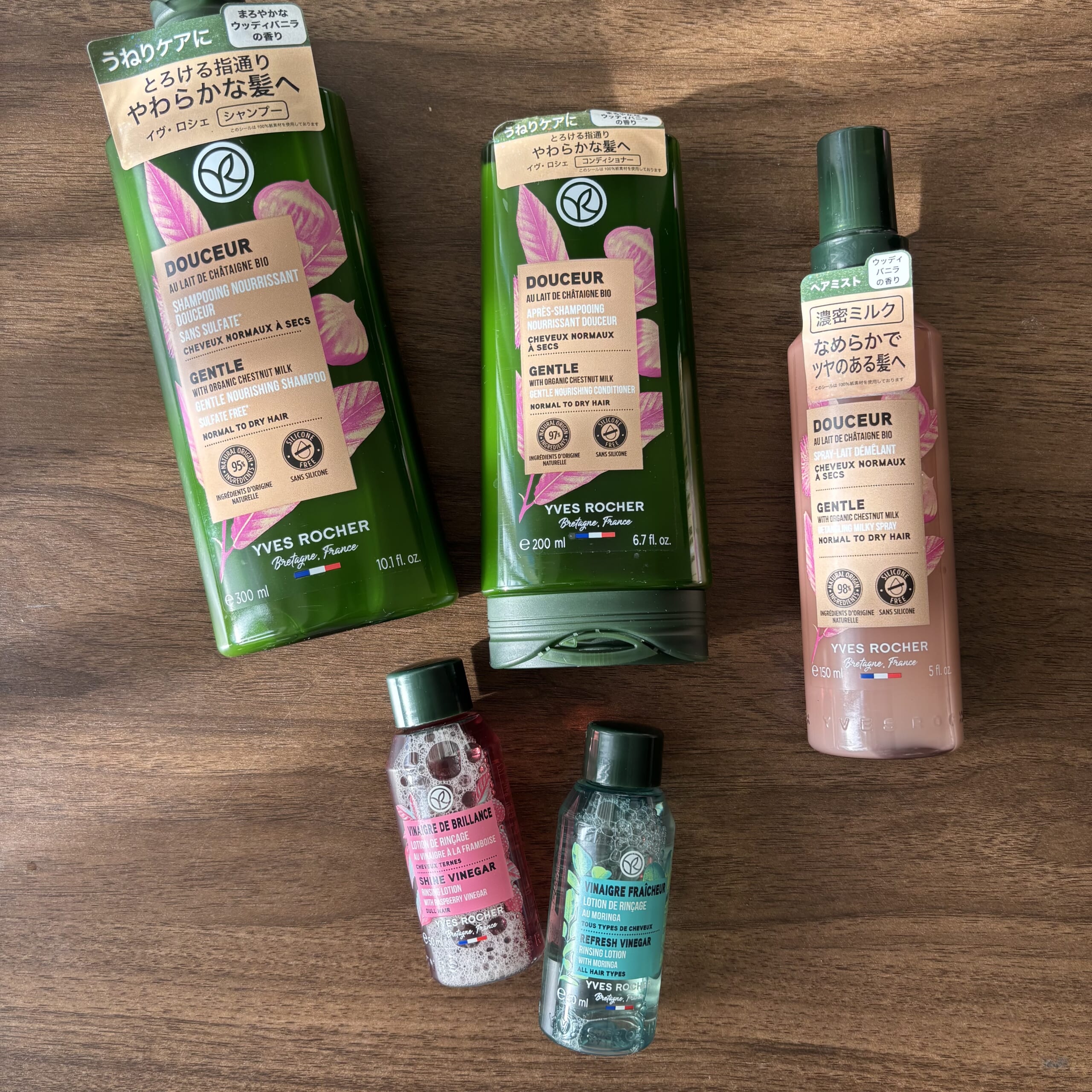 イヴ・ロシェのアイテムを使うと、いつもより髪がしっとり整って、ツヤまで出てくれるから気分まで上向きに♩