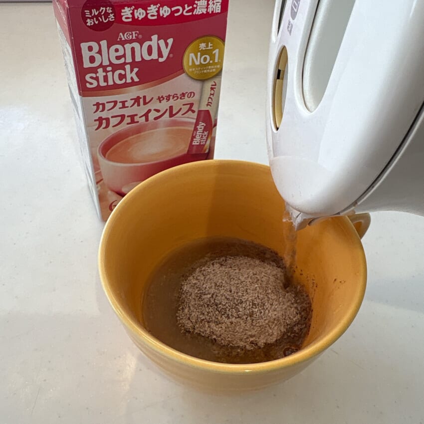 けれど「お湯を入れるだけ」で飲める「ブレンディ®」スティックの「カフェオレ やすらぎのカフェインレス」は、そういった手間も心配も全て省いてくれる優れものです♪