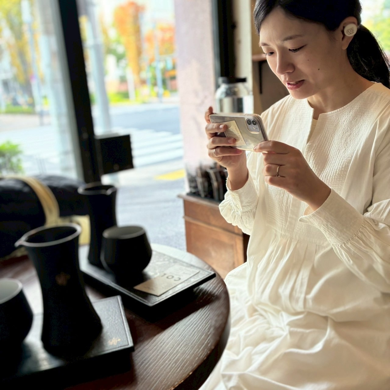 普段、カジュアル派なので、ほとんどアクセサリーをつけないことが多いのですが、ひとめぼれした城雅典さんの白薩摩のイヤリングをつけました。