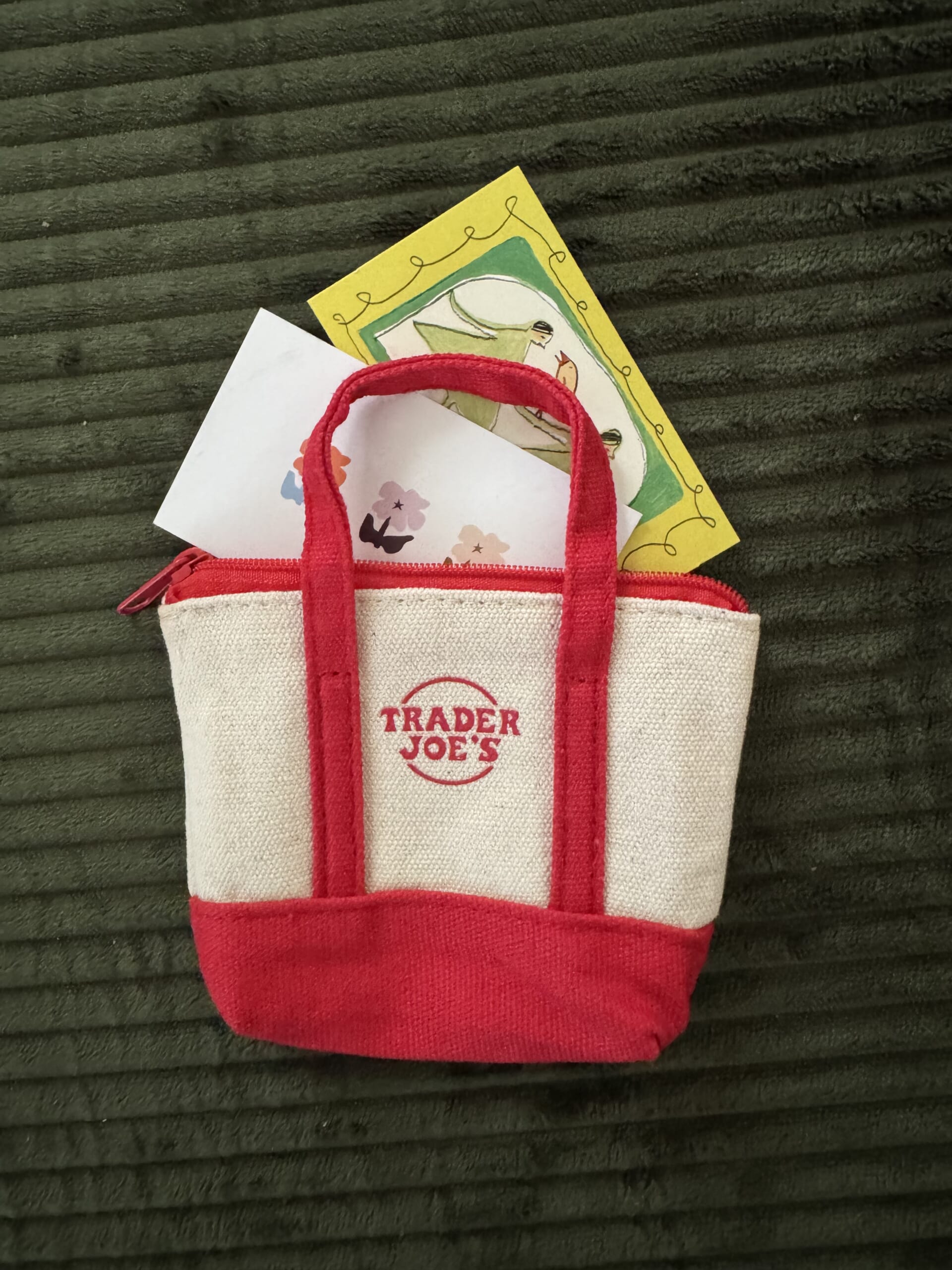 中の折り畳みバッグは便利だけどトレジョのロゴがまぶしいくらいに際立つぅ✨