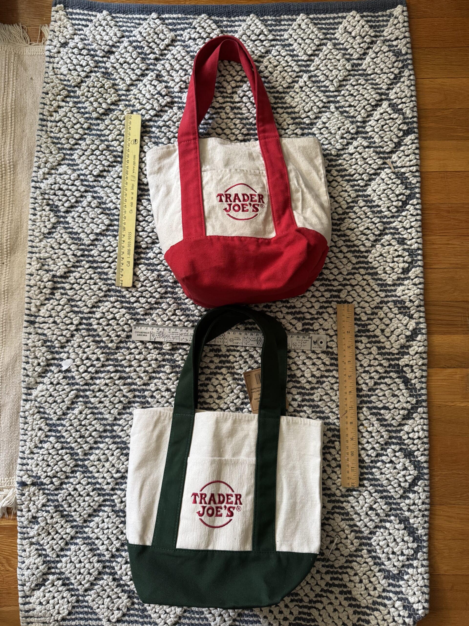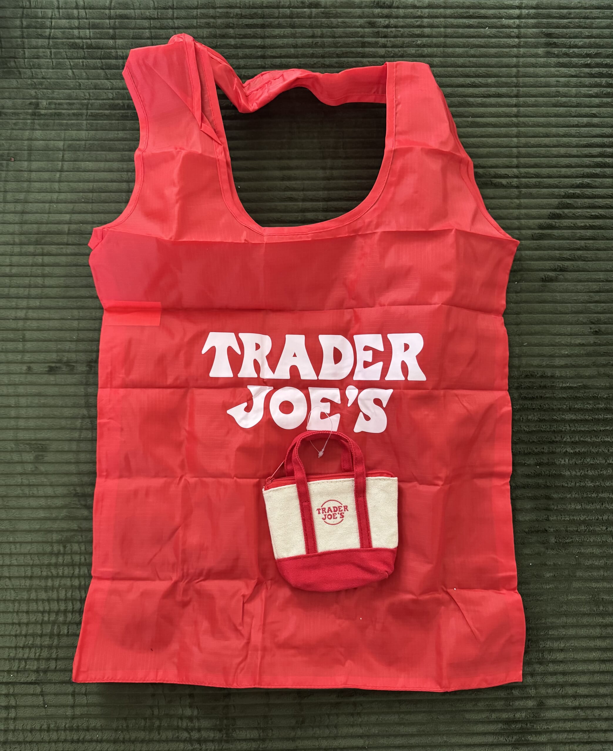 トレージョーの定番エコバッグ。LLBeanのグロッサリートートみたいなサイズが標準なのですが、同じデザインのまま手提げサイズになったエコバッグは大人気。