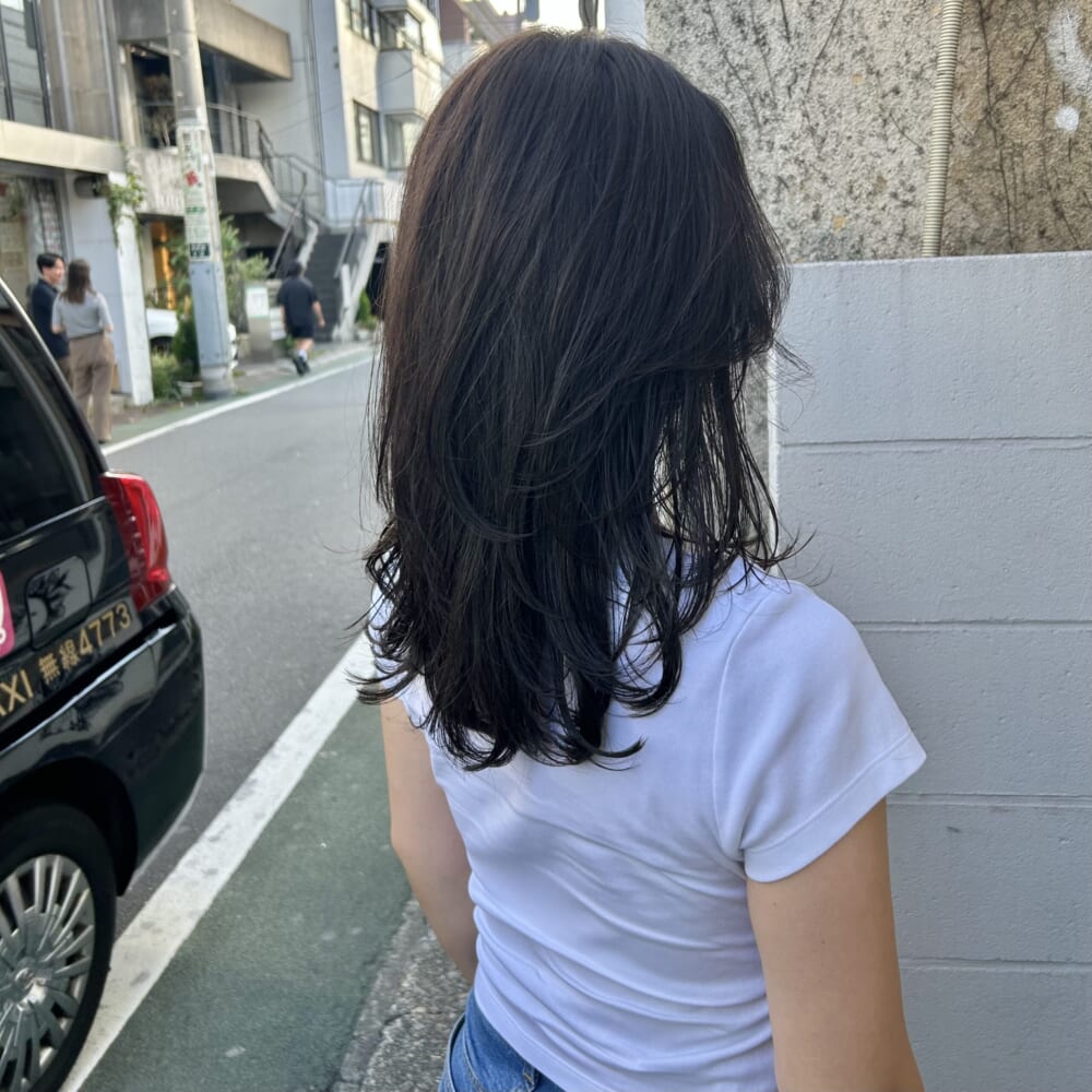 女性らしいラインを出しつつ、くせ毛も活きるようなヘアスタイルにしてもらいました!まだまだ子育て中なので結べる長さなのも大事。