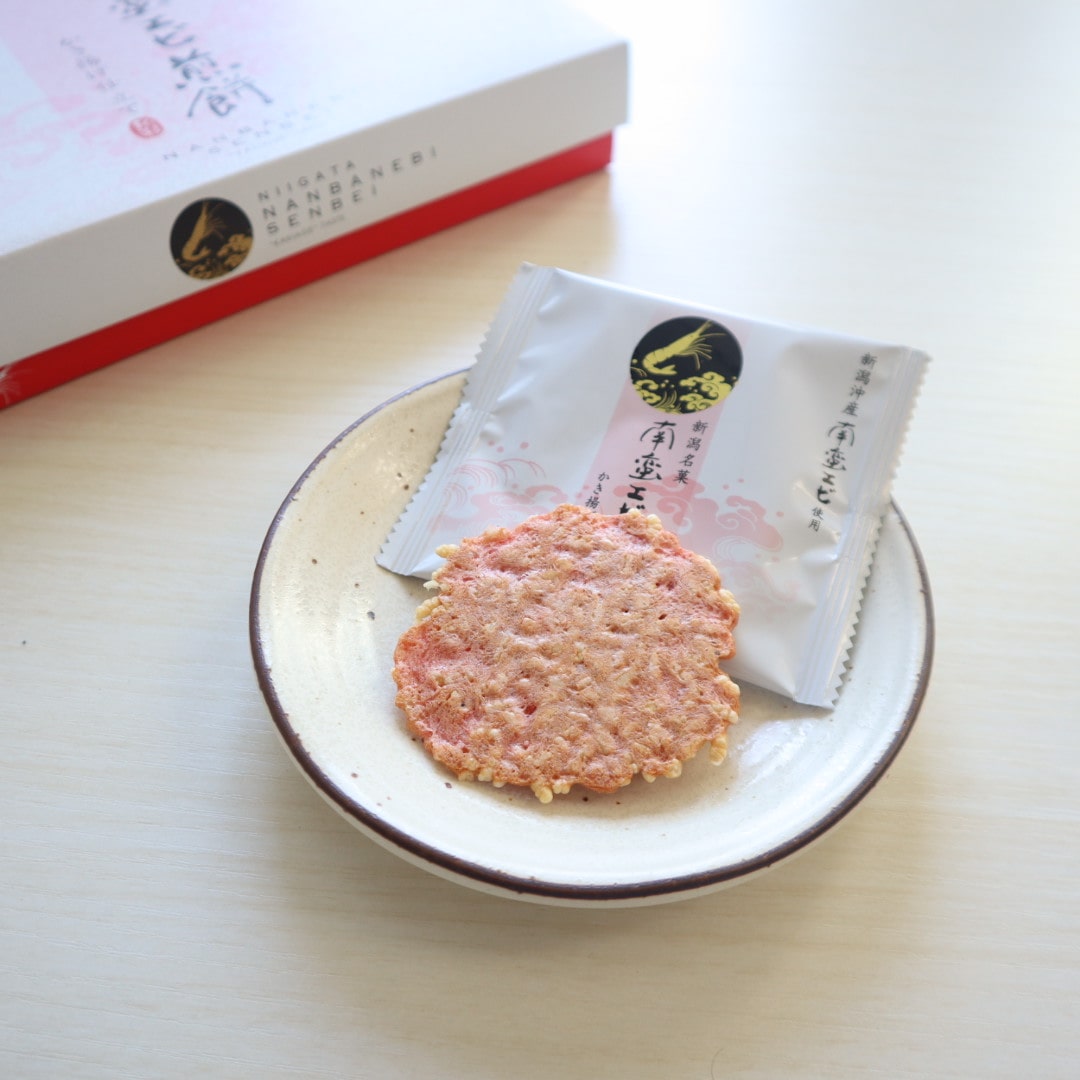 殻ごとすりつぶした南蛮えびのすり身を、せんべい生地に練り込みカリッと焼き上げていて、香ばしさがふわっと広がってとても美味しかったです◎