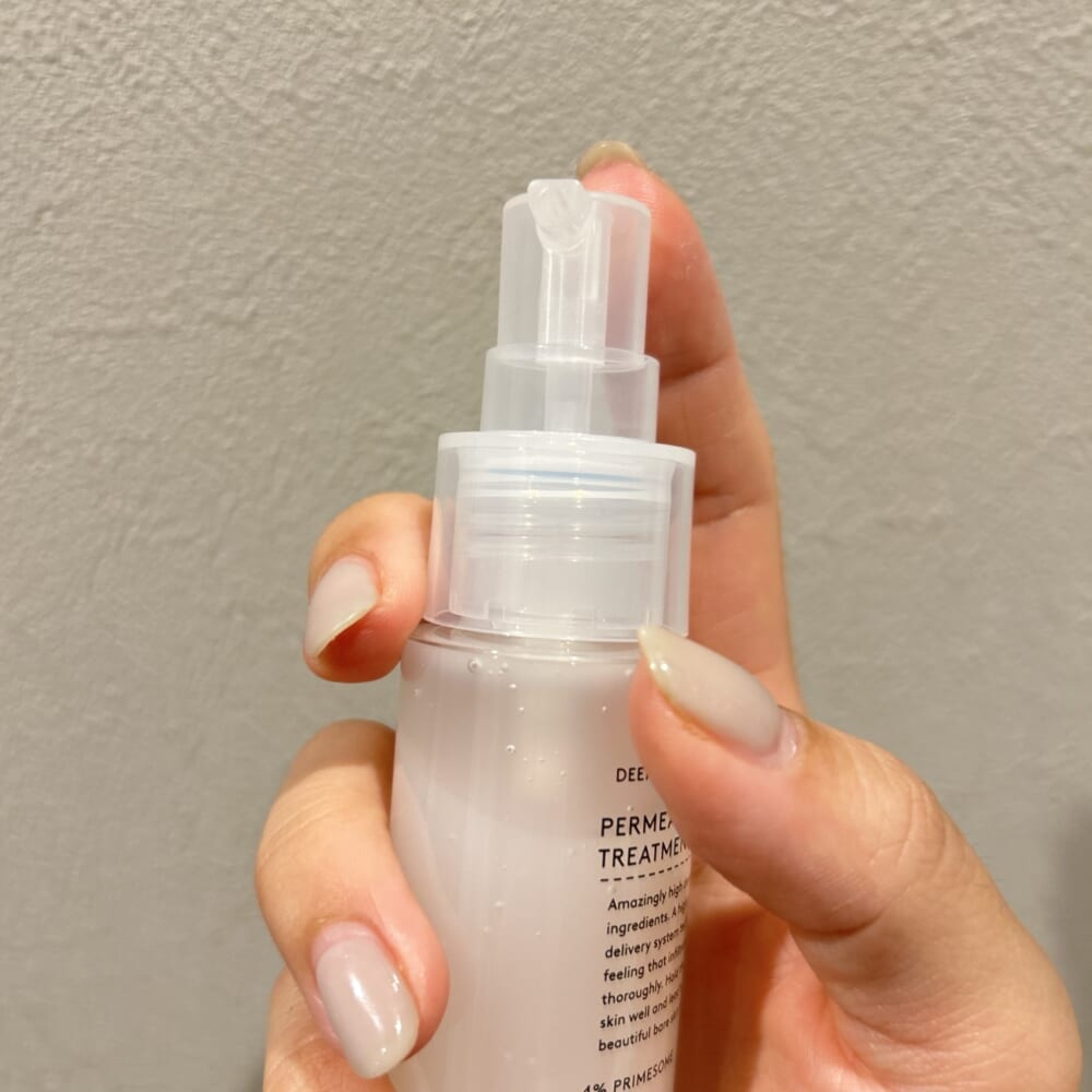 美容液自体は乳白色のとろっとしたセラムです。でも見た目よりは水分の多いテクスチャー。美顔器のスムーサーに使ってもよさそう。