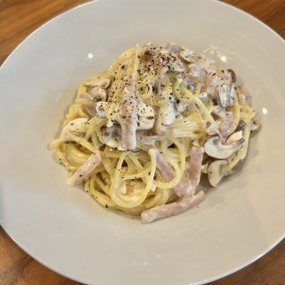 最近はワンパンパスタにはまっているので、こちらもワンパンで作りました。にんにくとベーコンを先に軽く炒めたら、浅めのお湯とパスタ入れて(ここでお湯たっぷりにしてしまうと、あとから牛乳を加えるのでやわやわなパスタになってしまいます)茹で、水分が少なくなってきたところで牛乳追加。イメージは最後は牛乳で茹であげる感じ。コンソメとお塩で味を調整、あれば粉チーズも追加して、水分がほぼなくなるくらいまで煮詰めます。最後の最後でマッシュルームを投入!生でも食べられるマッシュルームはあまり序盤に入れてしまうとマッシュルームの良さがなくなってしまうので、最後に絡めるくらいでOK。風味も飛ばない!