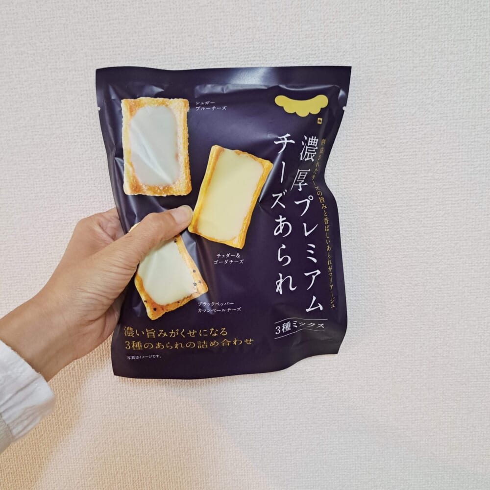 種類の異なるあられの上に、それぞれに相性ぴったりな異なるチーズが載っていて、こだわりを感じます。
