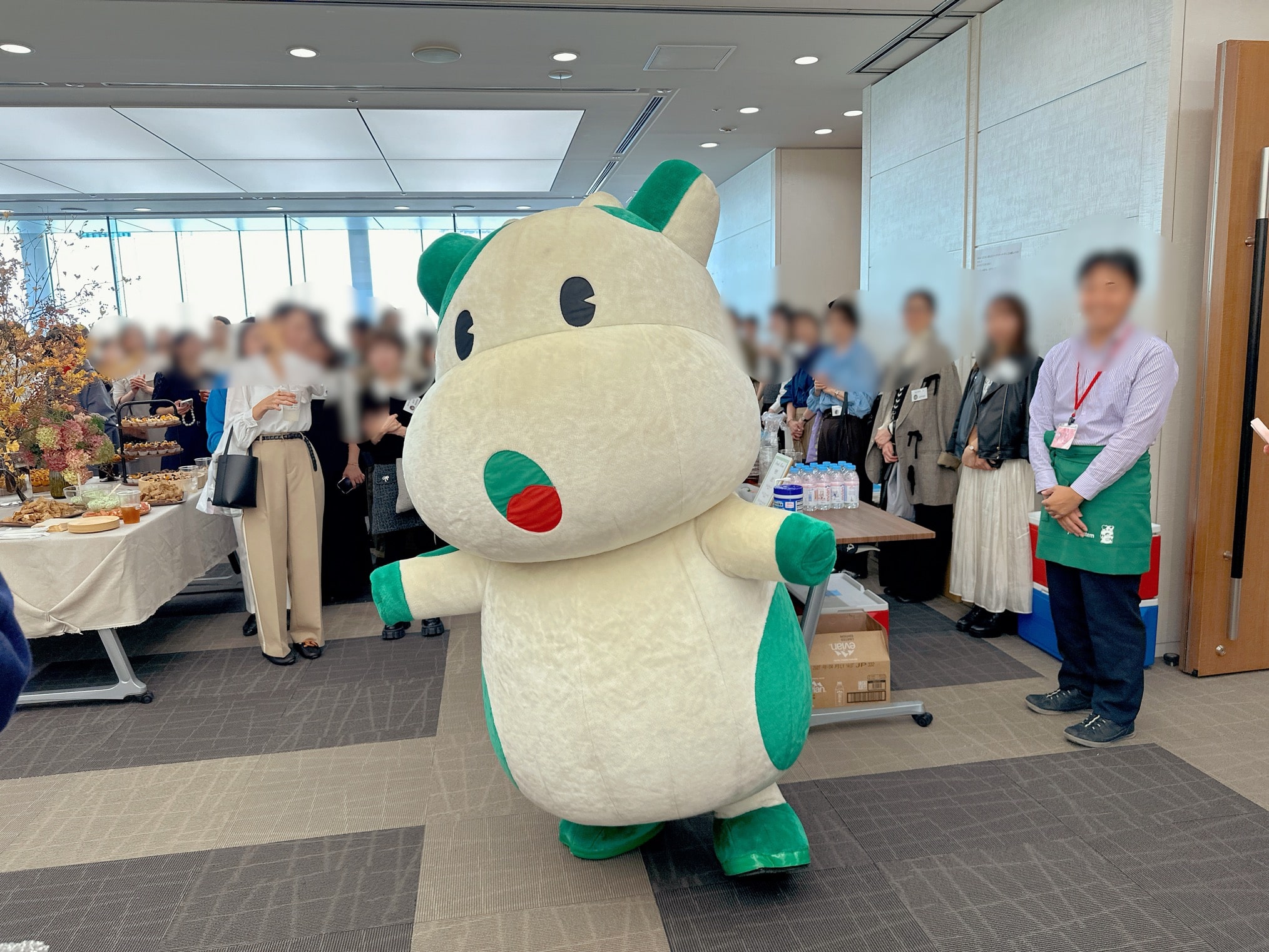 実はパーティの前に、パルシステム未加入者を対象として試食会が行われており、その流れで会場に、パルシステムのキャラクター「こんせんくん」が遊びに来てくれました!