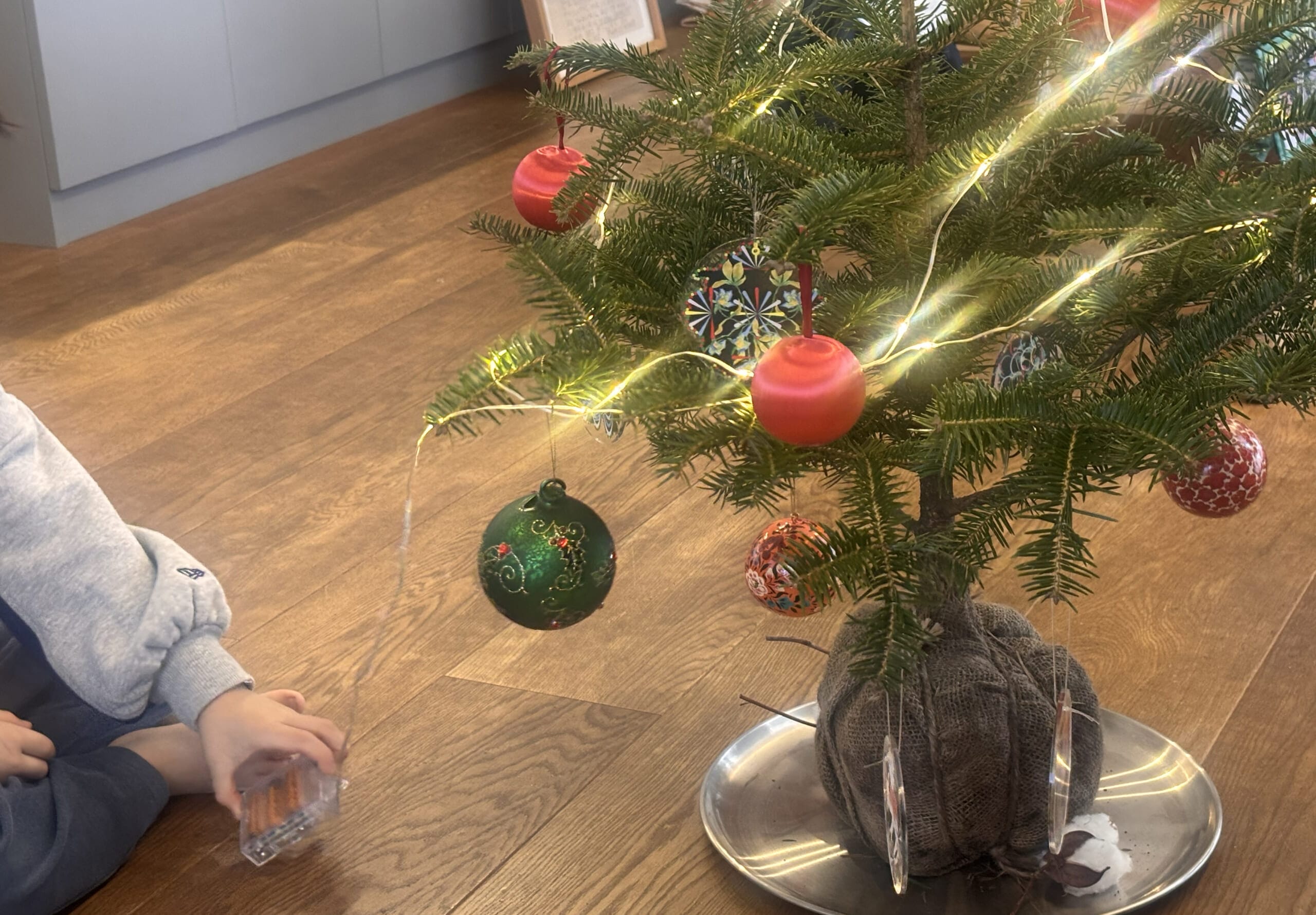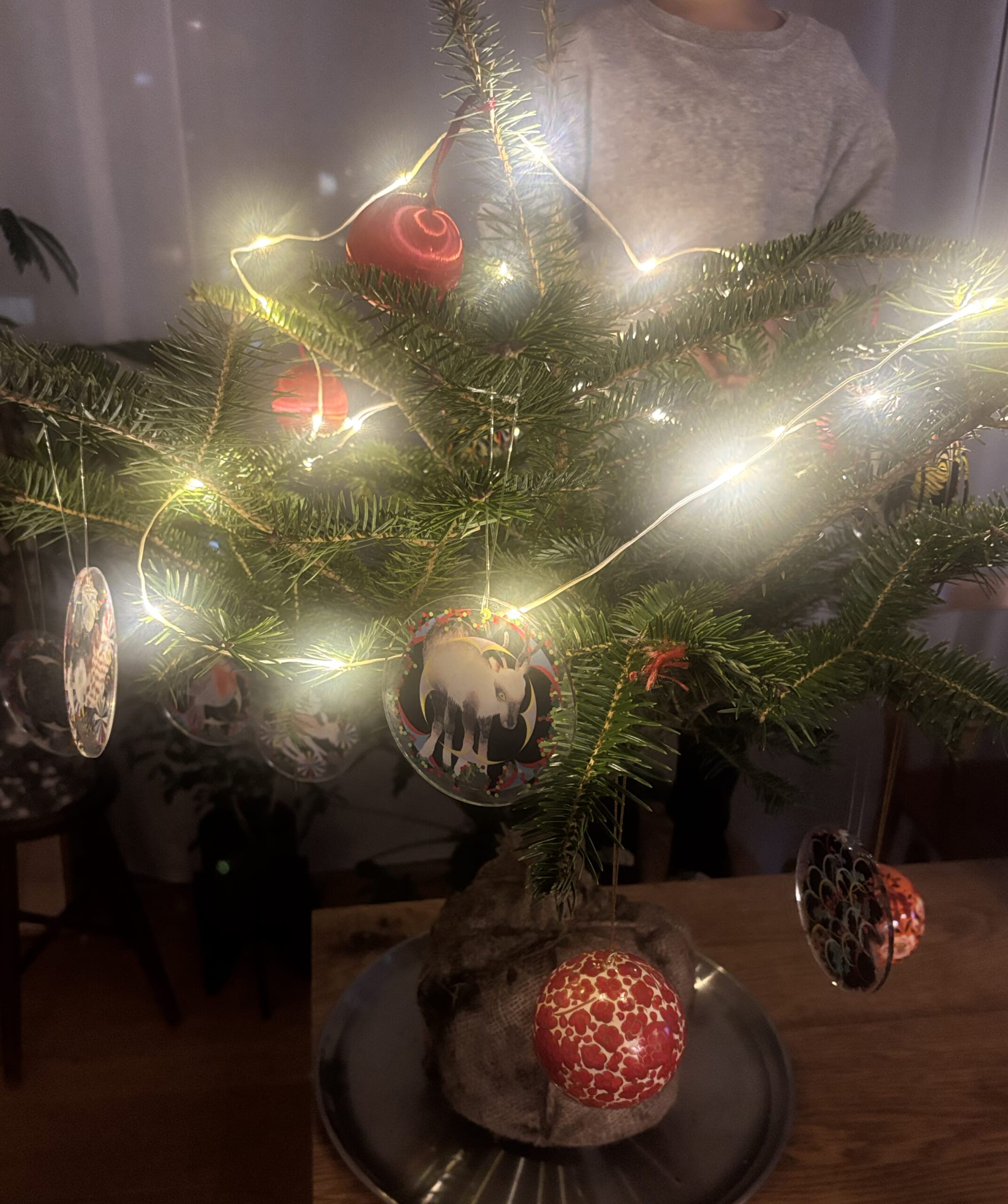 次男に飾りつけを手伝ってもらいました。飾りはcasatreeと中目黒のfarverさんで数年前に買ったものです。