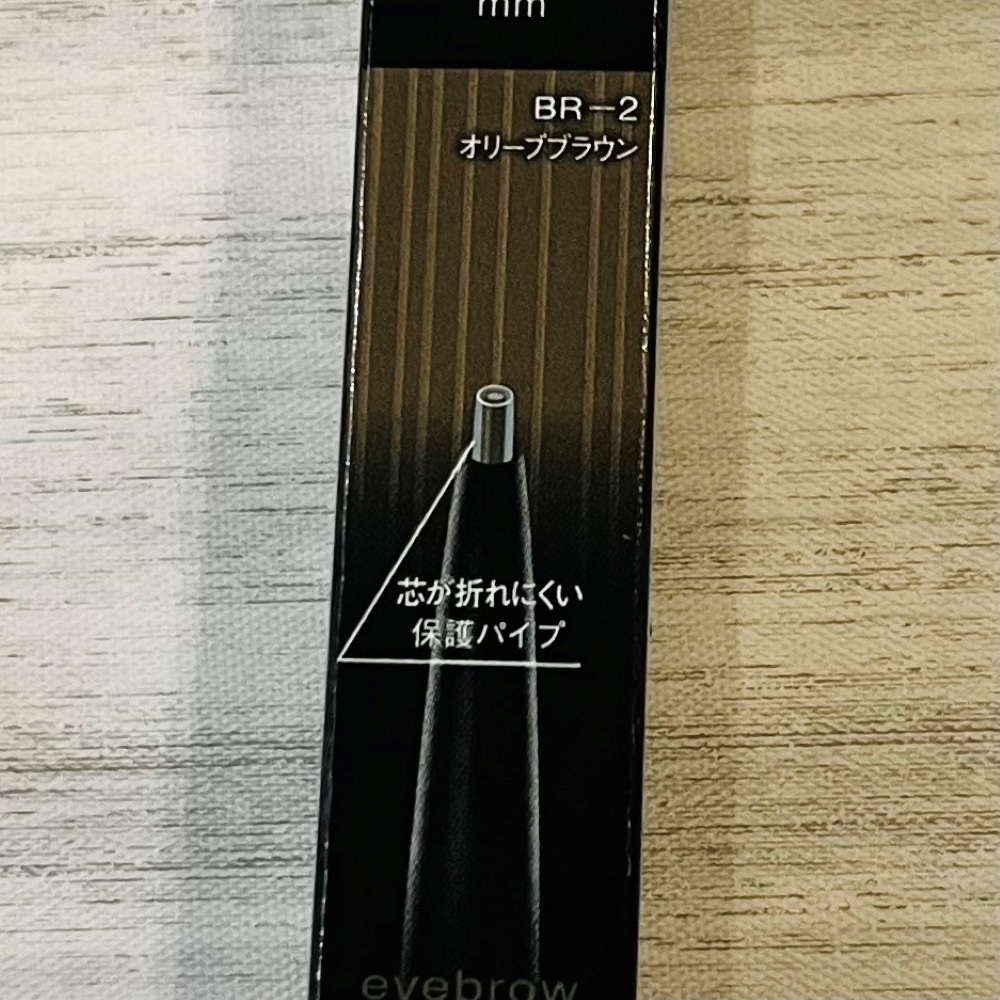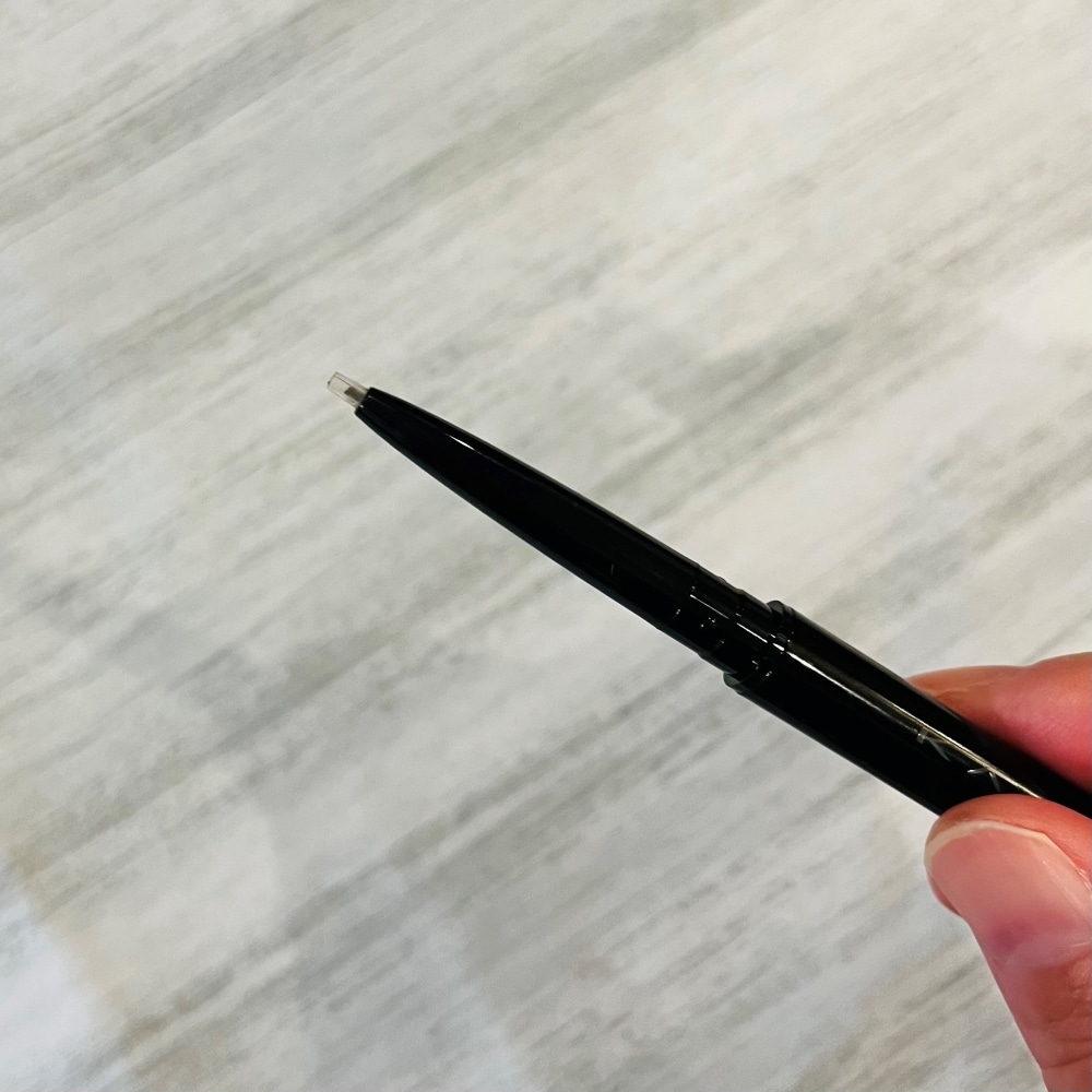 よくあるアイブロウペンシルは先端からそのまま芯が出てくる形ですが、こちらは先端に上下に動く保護パイプがついています。