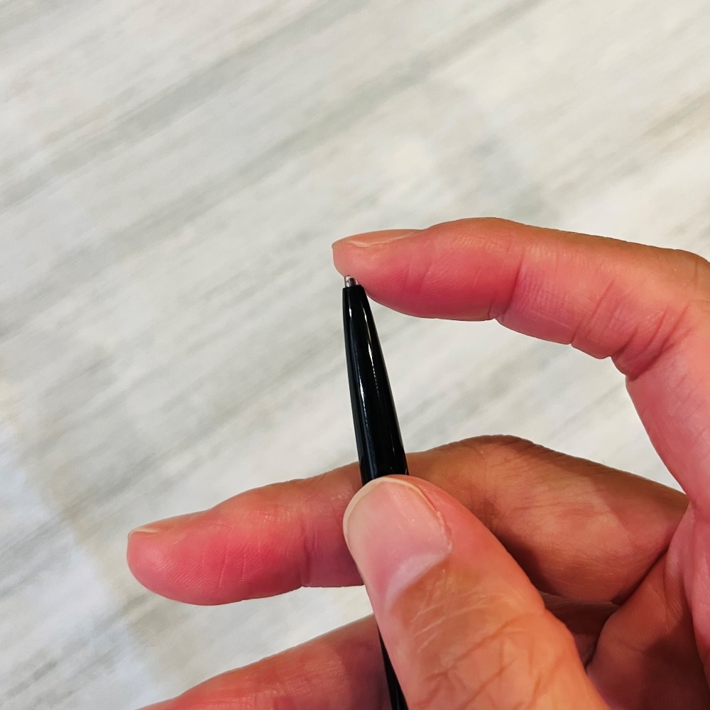 写真は見えやすいようにしっかりめに描いたものを載せていますが、シャーペンで文字を書くようにスルスルと細い線を描くことができます。