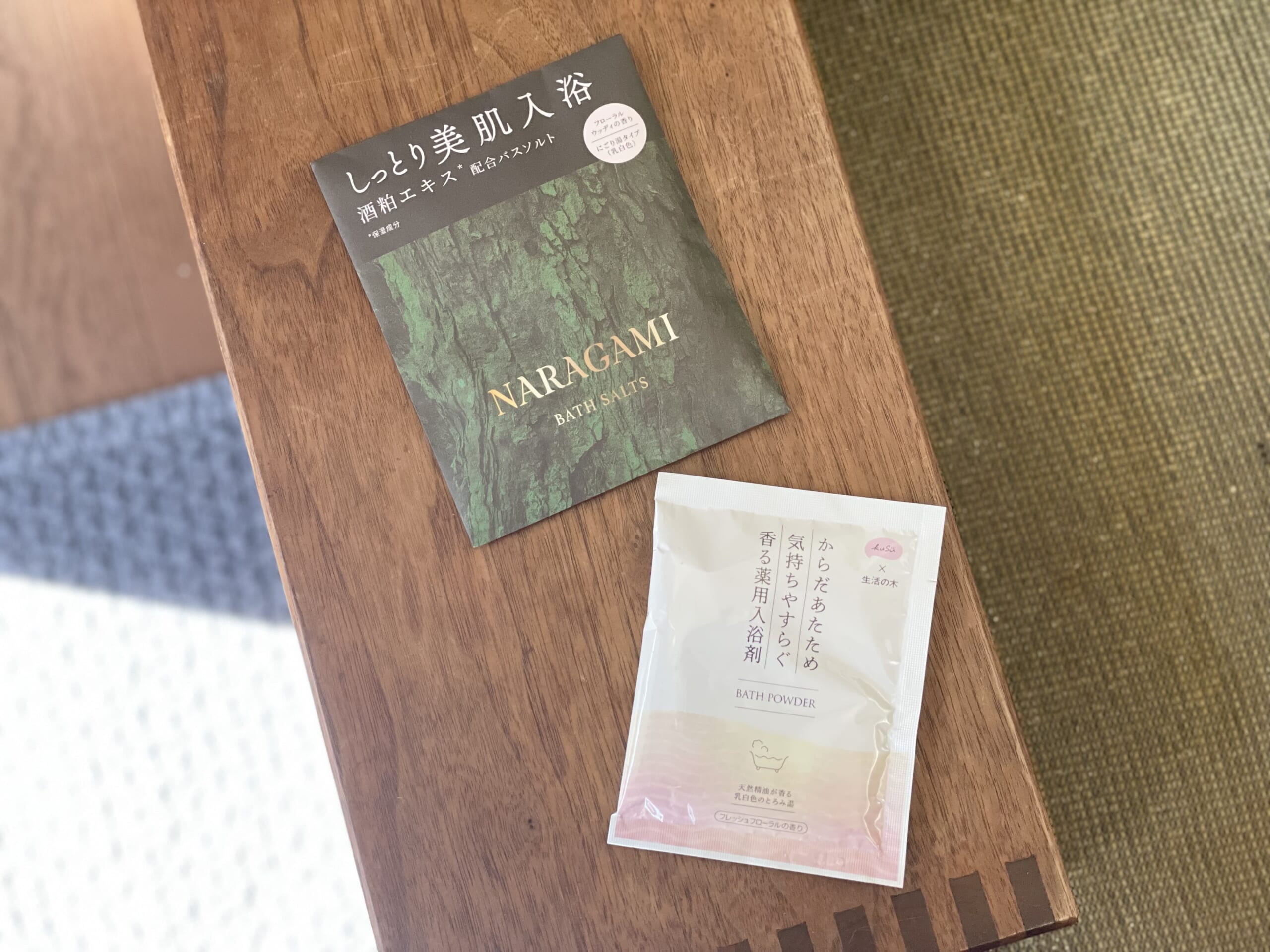 NARAGAMIのバスソルトは、酒粕エキスを配合した保湿効果のある入浴剤で、にごり湯タイプのまろやかな湯ざわりを楽しめます。森林浴を思わせる爽やかで落ち着いた香りでリラックスできます。酒粕の保湿で美容効果を期待できそうな贅沢な使い心地でした。