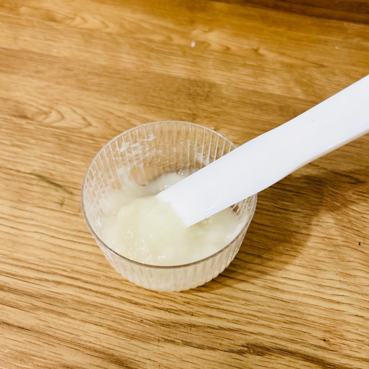 上記写真のピンクと緑袋の溶剤をカップの中に入れてまぜまぜし、それをスパチュラでお顔の上にまんべんなくのせていきます。